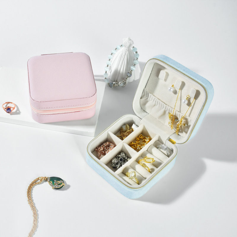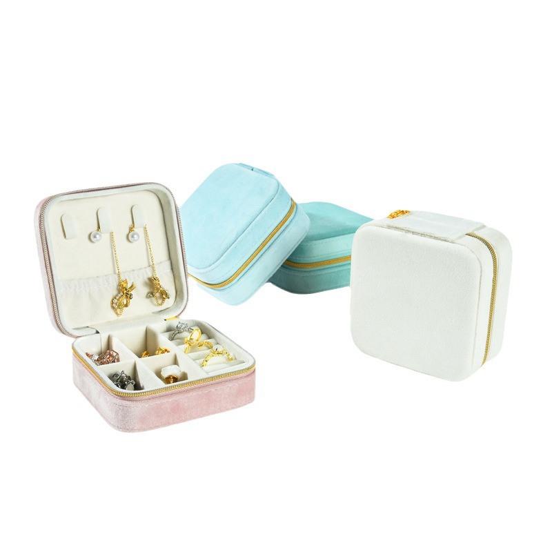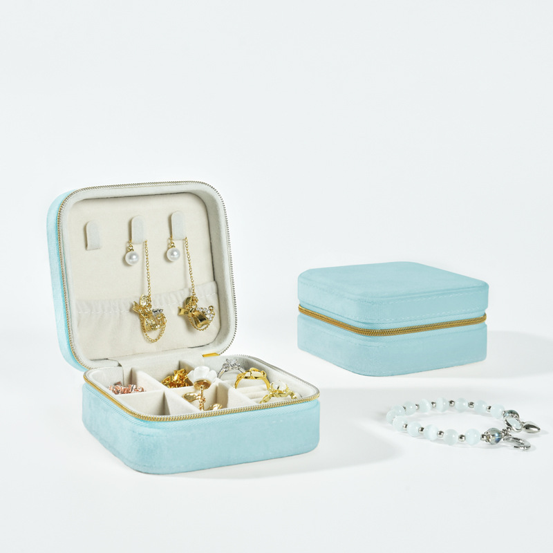 Specifications and models: Li velvet-square-light cyan; jewelry storage box
