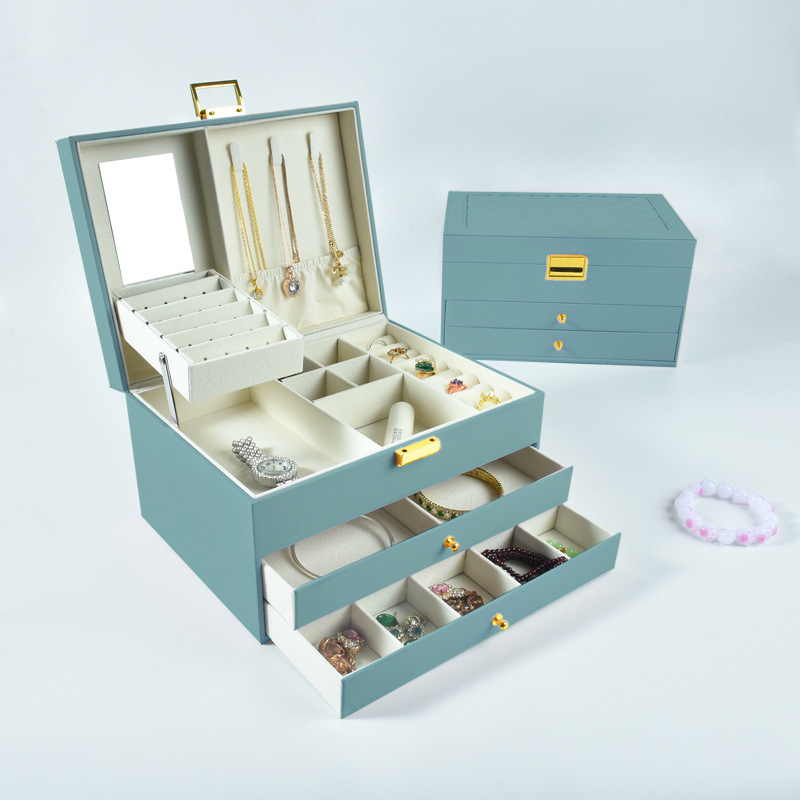 Specifications and models: With mirror-four-layer jewelry box-light blue; jewelry storage box