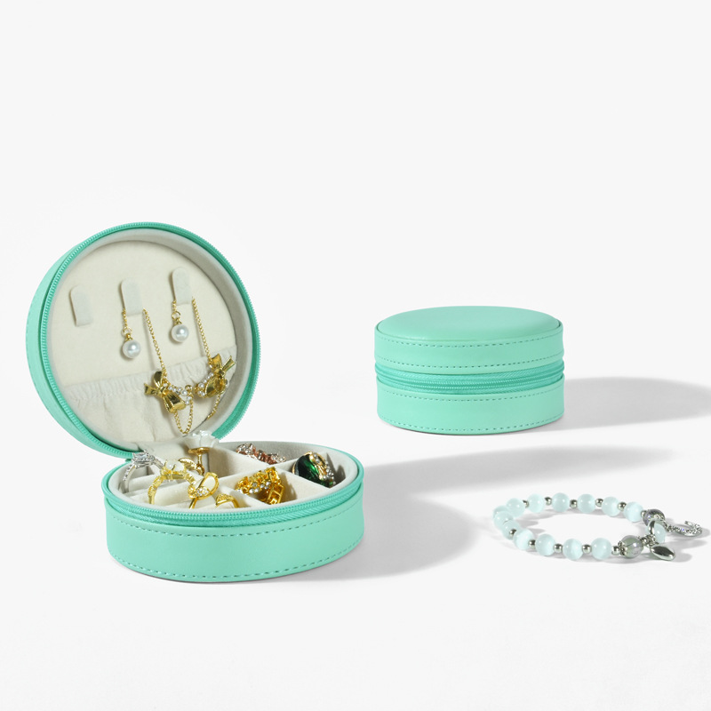 Specifications and models: Round pu leather-tiffany blue; jewelry storage box