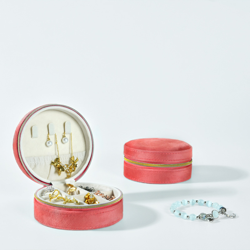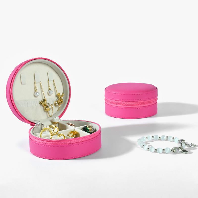 Specifications and models: Round pu leather-light pink; jewelry storage box
