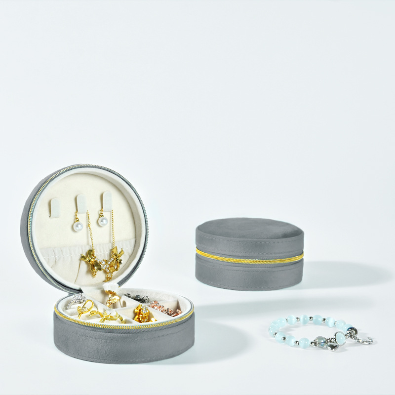 Specifications and models: Li velvet-round-blue gray; jewelry storage box