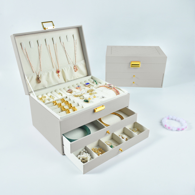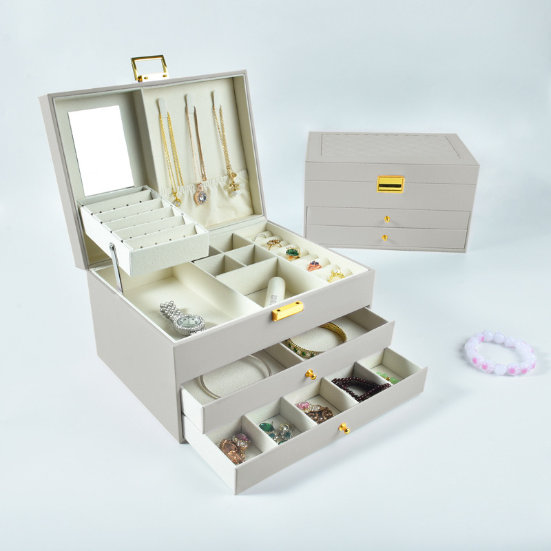 Specifications and models: No mirror-three-layer jewelry box-off-white; jewelry storage box