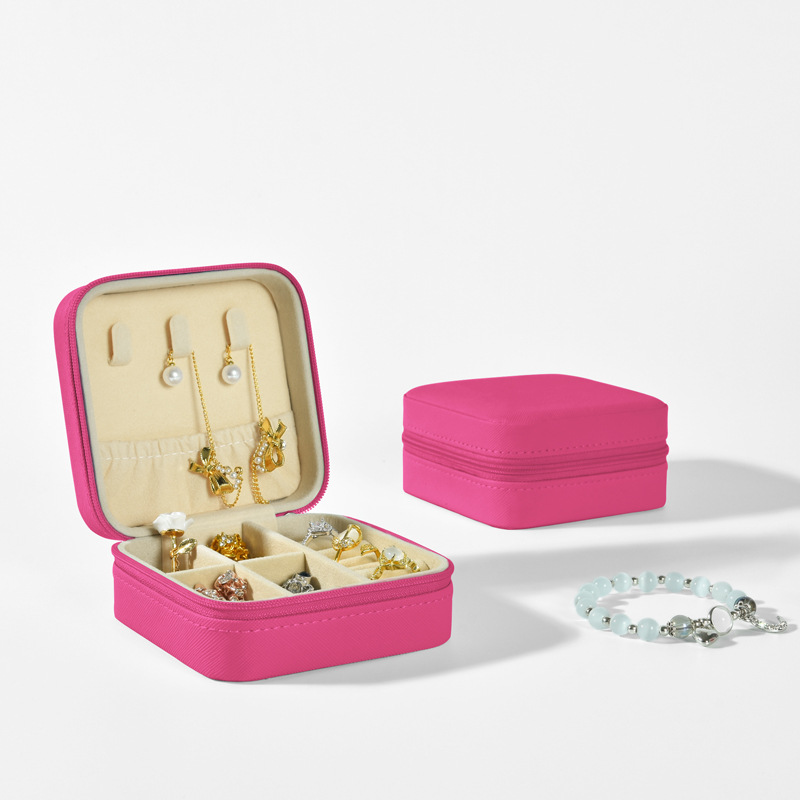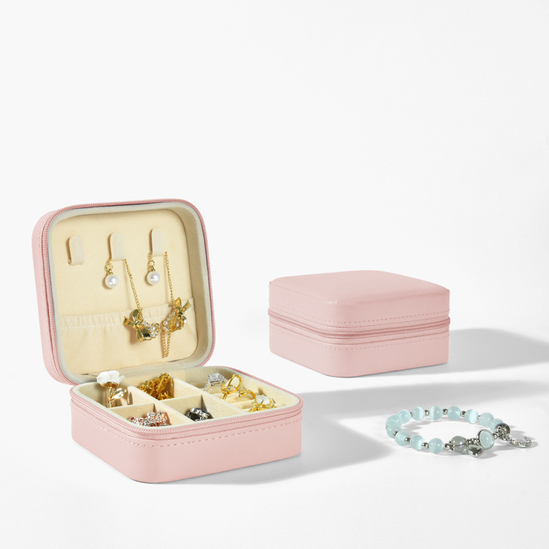 Specifications and models: Square pu leather-light pink-long style; jewelry storage box