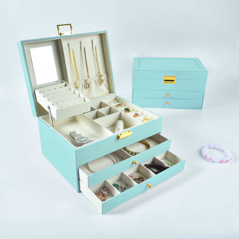 Specifications and models: No mirror - three-layer jewelry box - light blue; jewelry storage box
