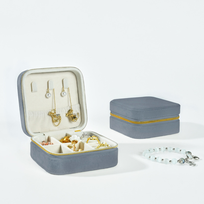 Specifications and models: Li velvet-square-blue gray; jewelry storage box