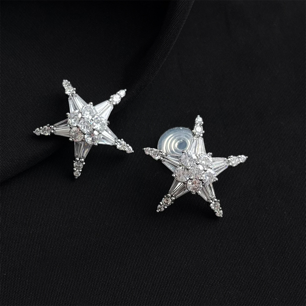 Color: Upgraded double-layer mosquito coil disc zircon five-pointed star ear clip