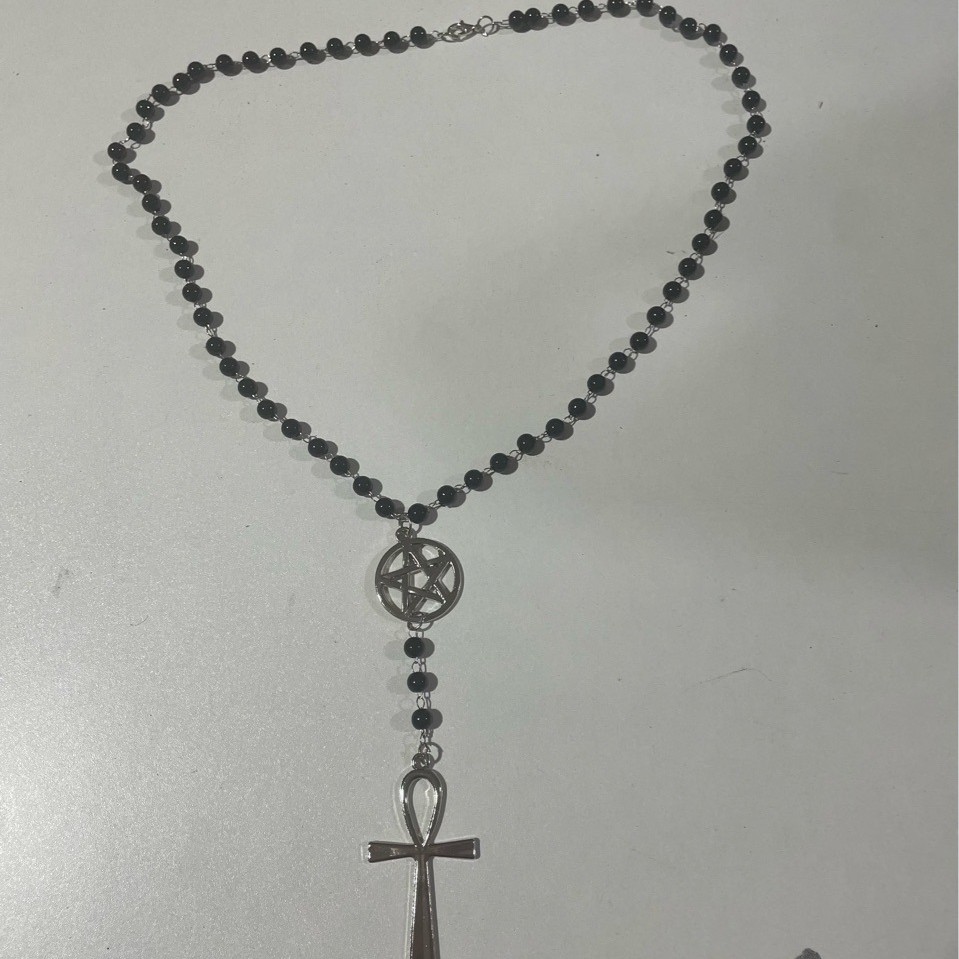 Lolita Punk Gothic Steam Cross Black Abi Necklace choker Star Mans Subculture sweater chain accessories