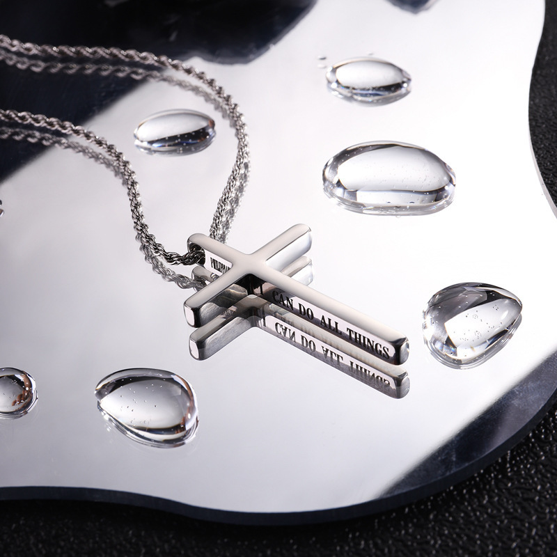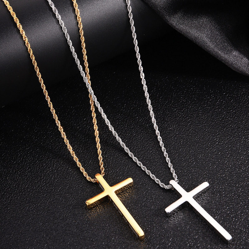 Men's European and American Fashion Cross Necklace All-Match High-Level Color-Retro Side Engraving Stainless Steel Necklace