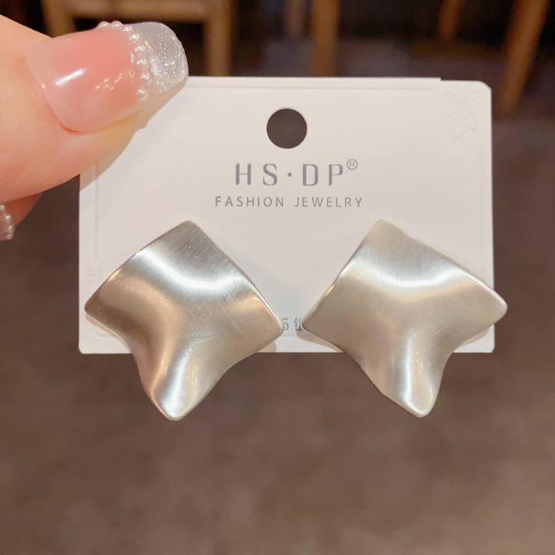 Color: Dumb silver-metal brushed diamond earrings (thick gold plating)