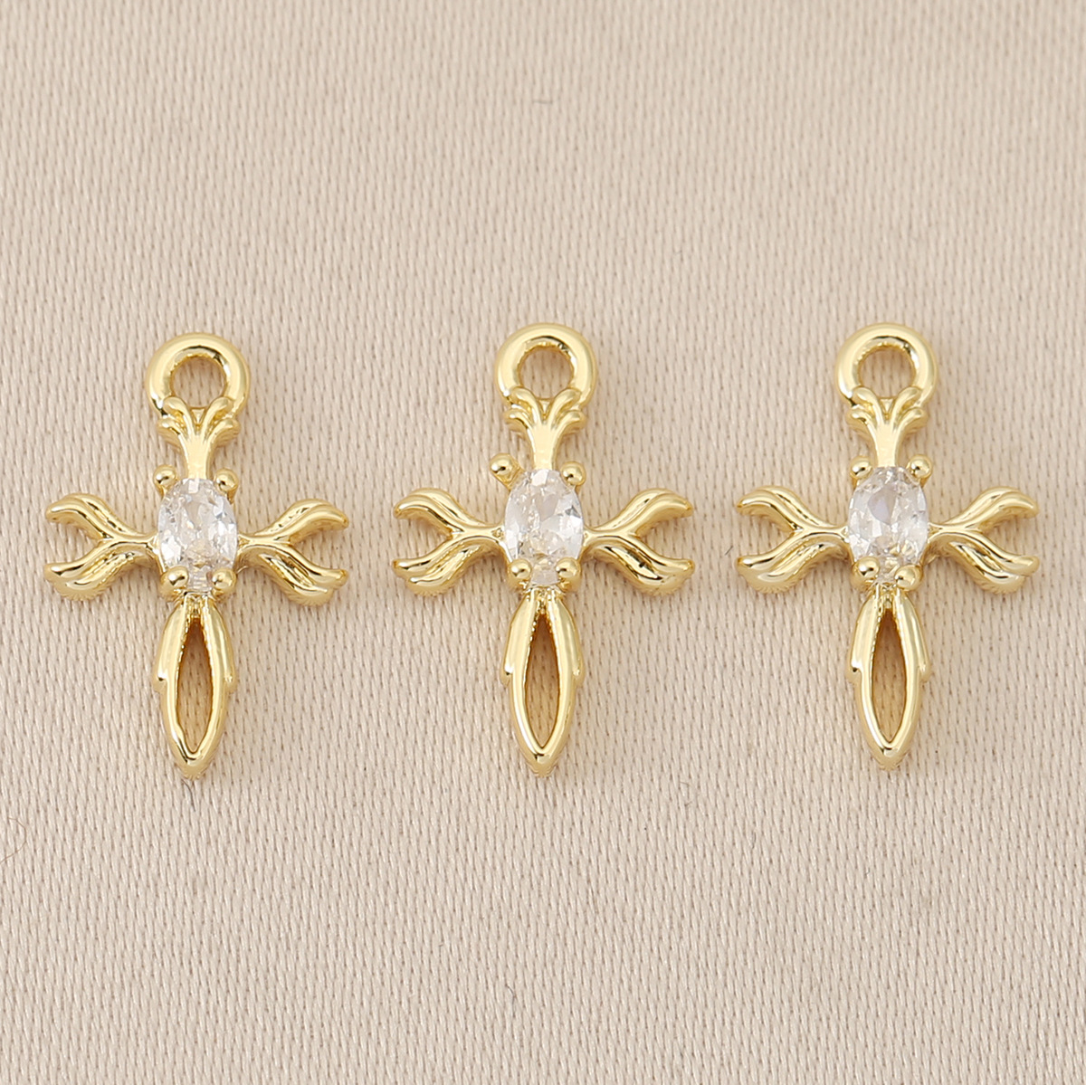 Hanging copper plated 18K real gold color European and American vintage baroque cross DIY pendant necklace bracelet pendant pendant