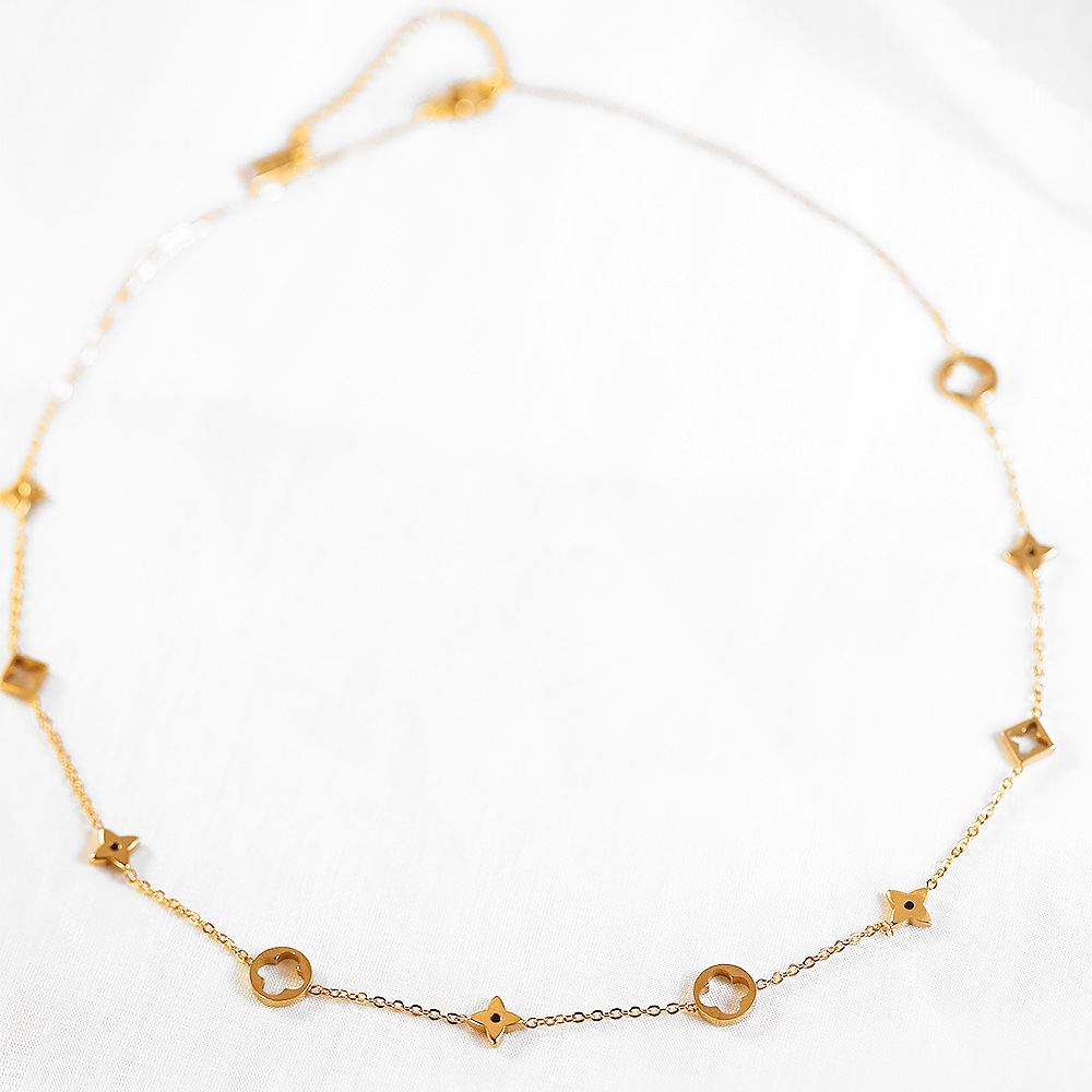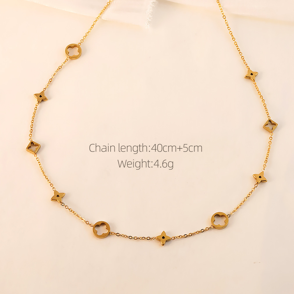 Color: Multiple hollow lucky four-leaf flower necklace gold