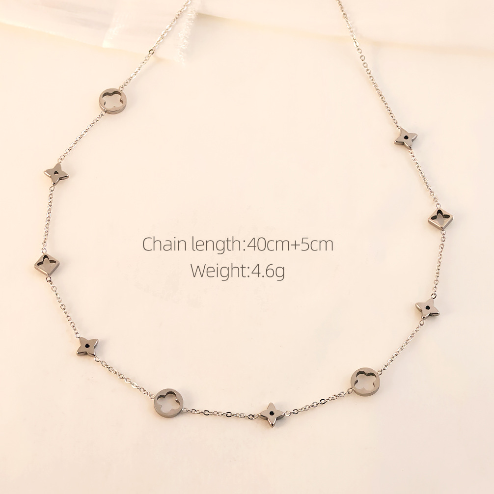 Color: Multiple hollow lucky four-leaf flower necklace silver