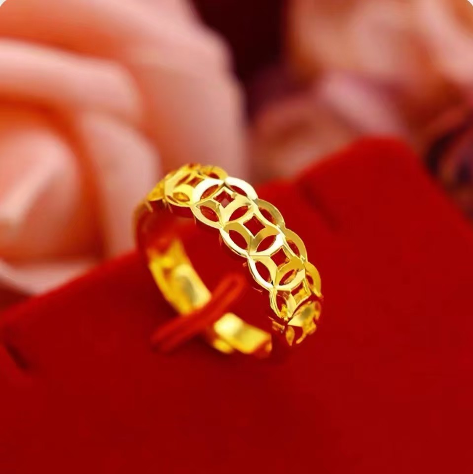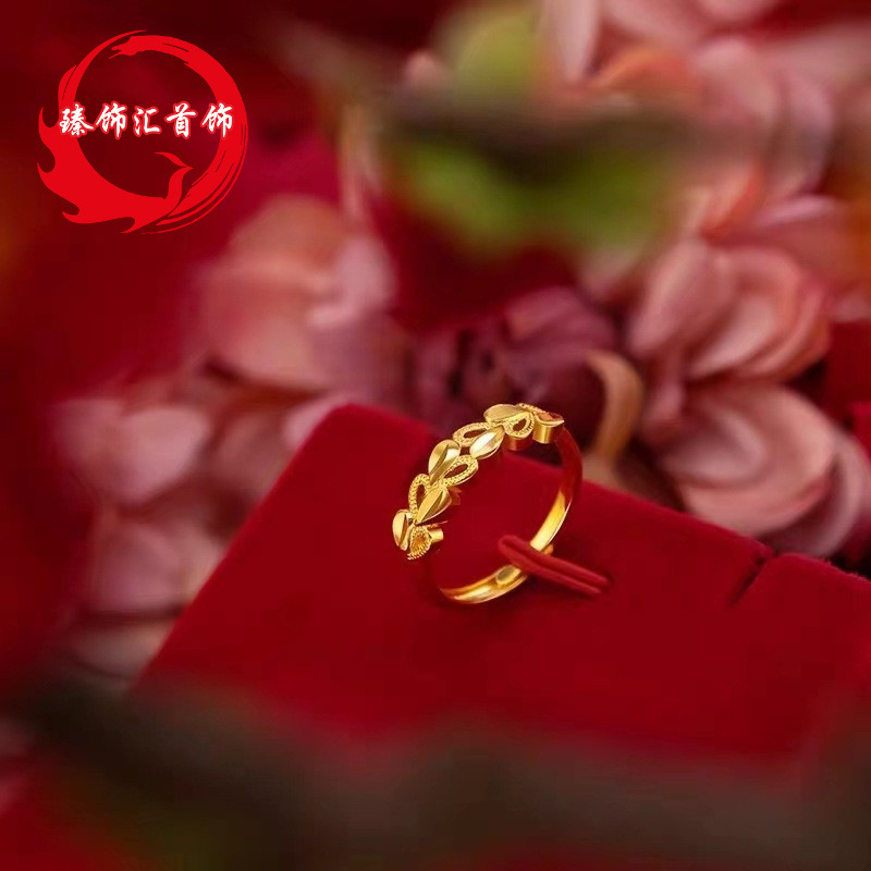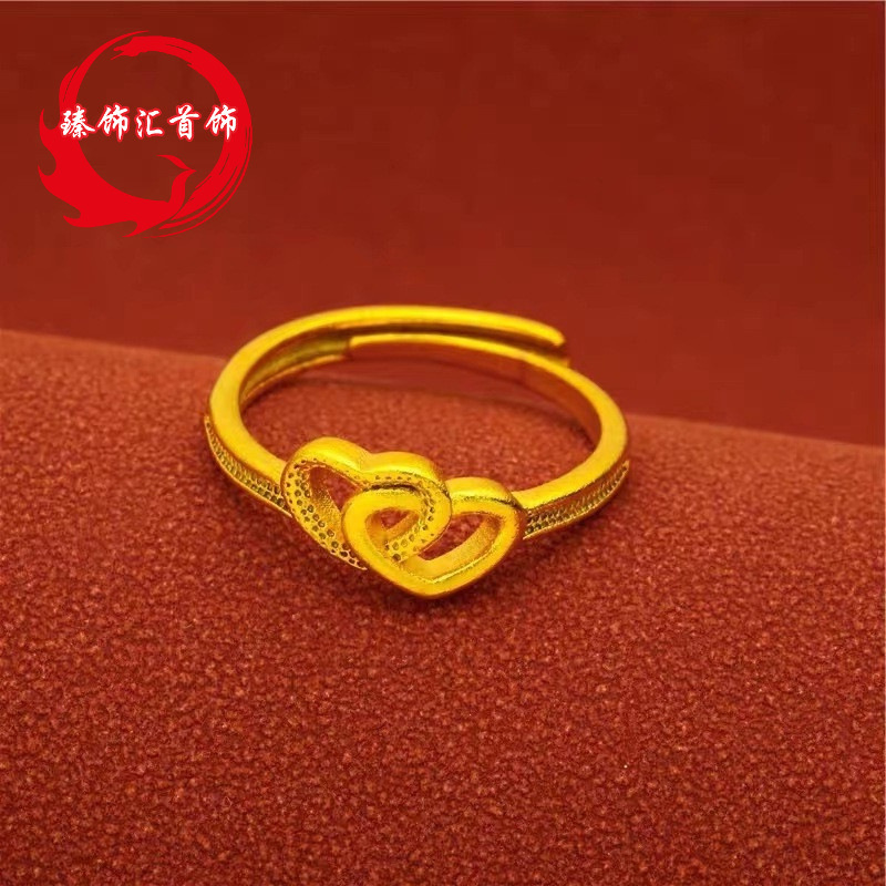 Wholesale Imitation Gold Vietnam Sand Gold Love Ring Opening Women's Brass Gold Plated Ring Two Shihuan Ring Premium