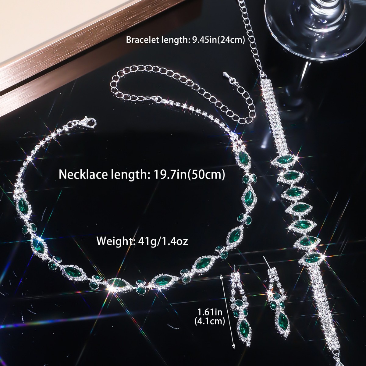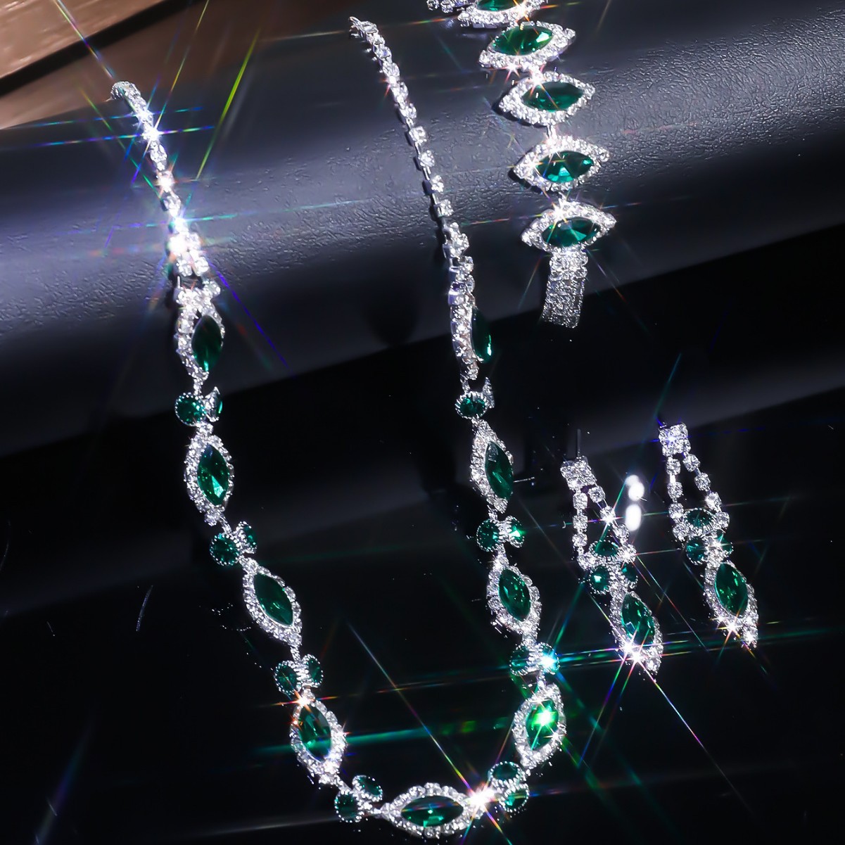 Three-Piece Set of Heavy Industry Luxury Vintage Color Treasure Bride Jewelry suit Brilliant High-Grade Necklace Earrings for Women