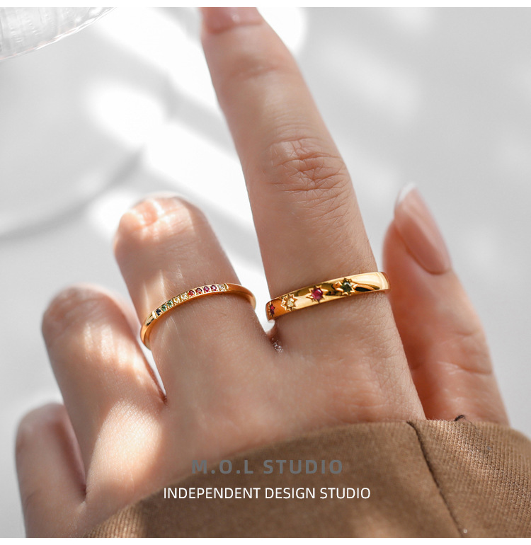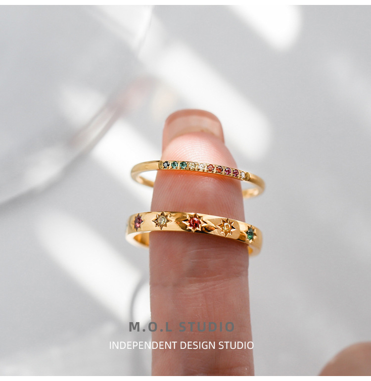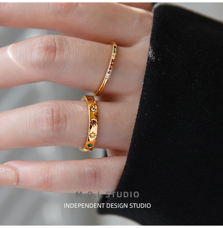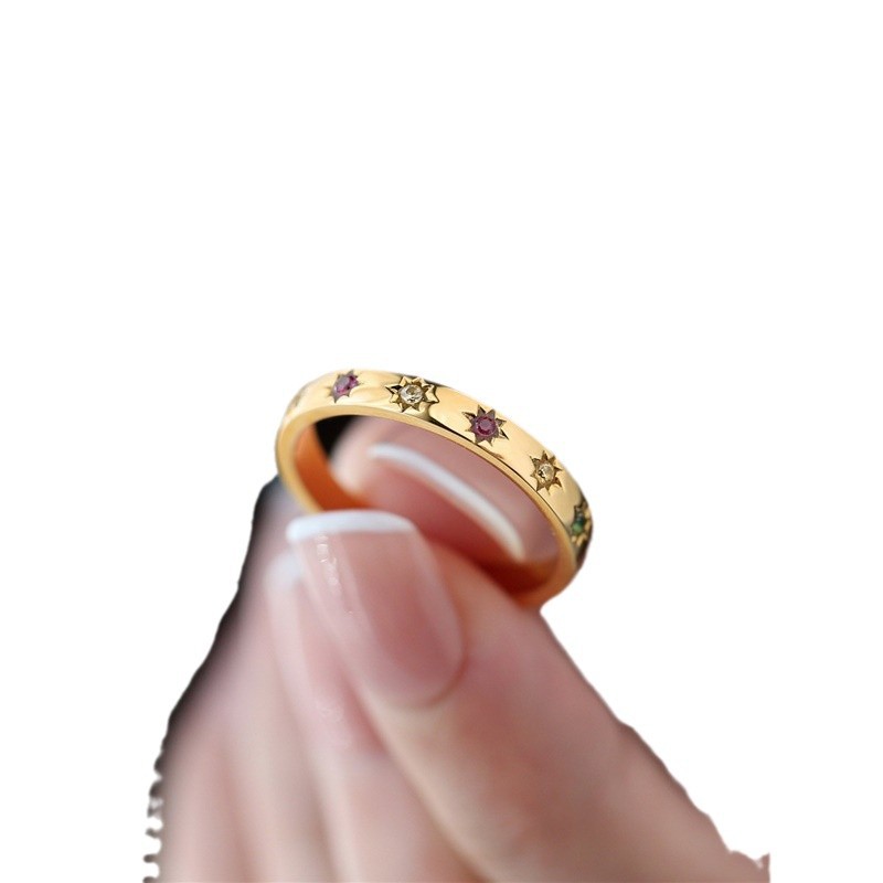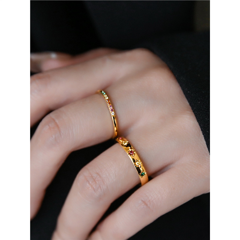 Silin 2025 Light Luxury Niche Micro-inlaid Colorful Zircon Crystal Ring Women's Ring Plated with 18K Gold