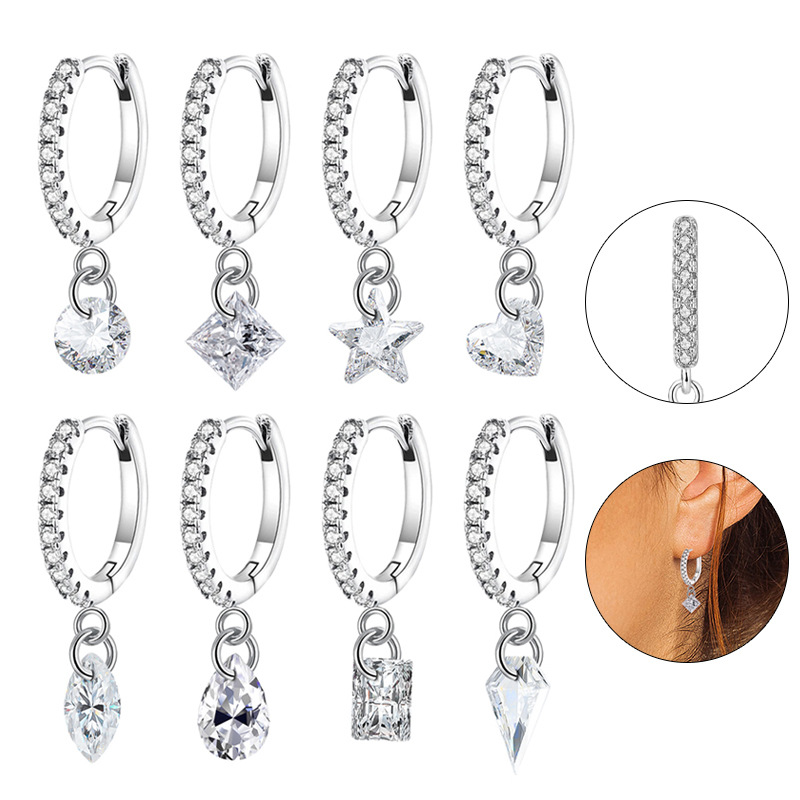 Korean Style Small Diamond Earrings, Copper Micro-Inlaid Smart Earrings, Five-Pointed Star Water Drop Zircon Earrings, Super Flash Earrings