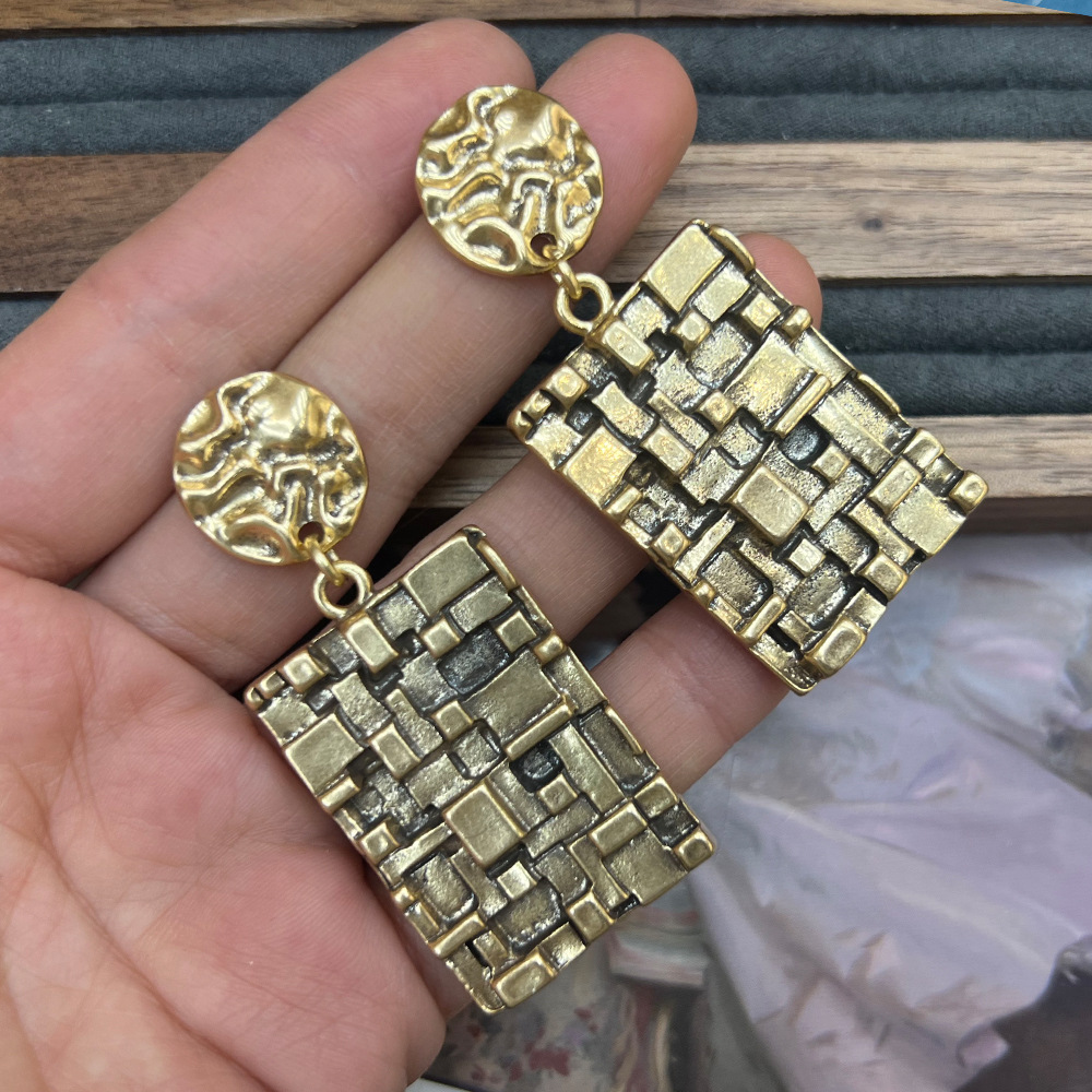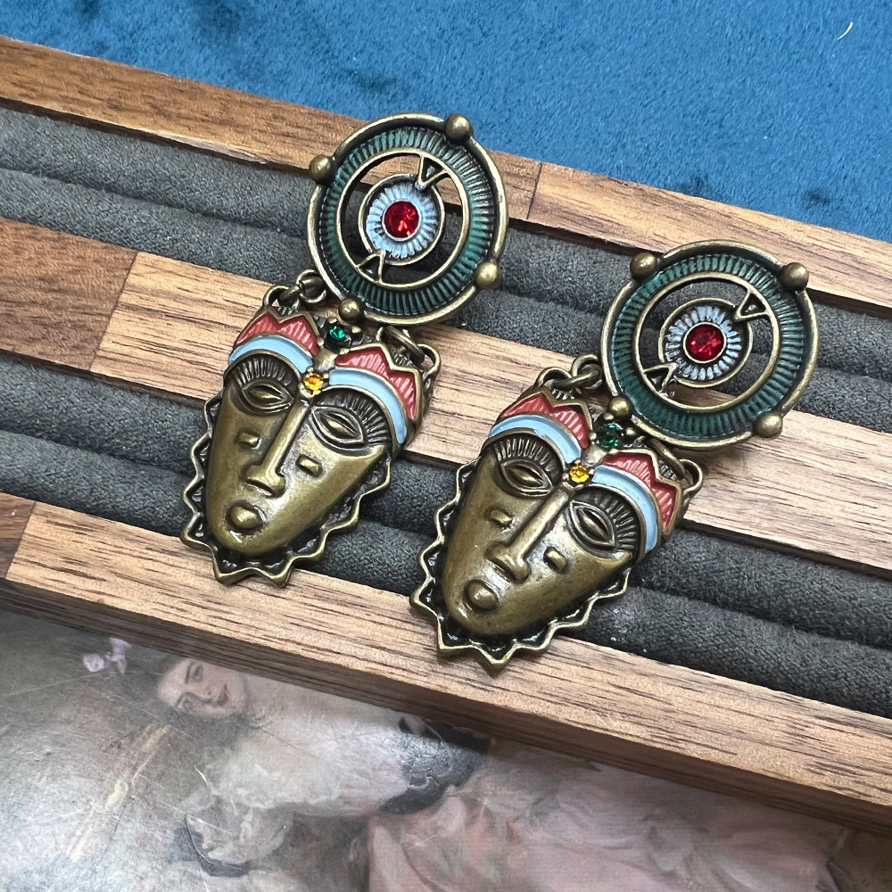 African Mask Indian Like Tribal Earrings Middle Ancient Jewelry Avon Exotic Old Gold Pendant Earrings Ornaments