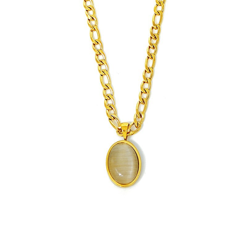 Vintage Oval Crystal Titanium Steel Necklace Women European and American Fashion Stainless Steel Gold Plated Necklace Clavicle Chain chocker