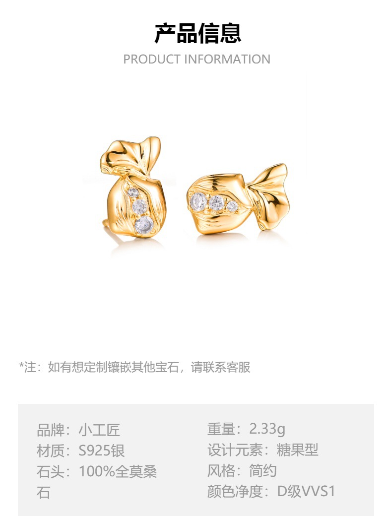 Cross border hot sale candy moissanite earrings s925 silver 14k gold ladies sweet cute earrings