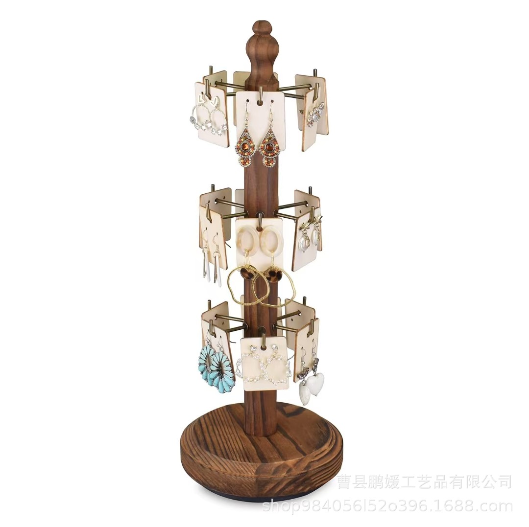 Multi-layer Wooden Rotating Jewelry Rack Shop Jewelry Finishing Rack Bracelet Earring Card Display Rack Solid Wood Jewelry Rack