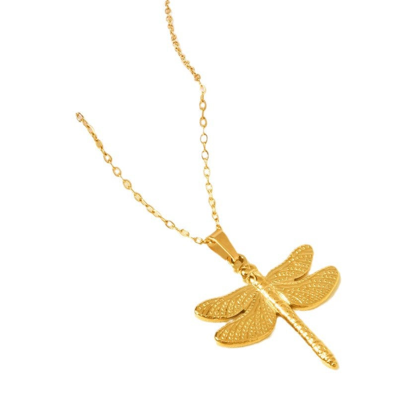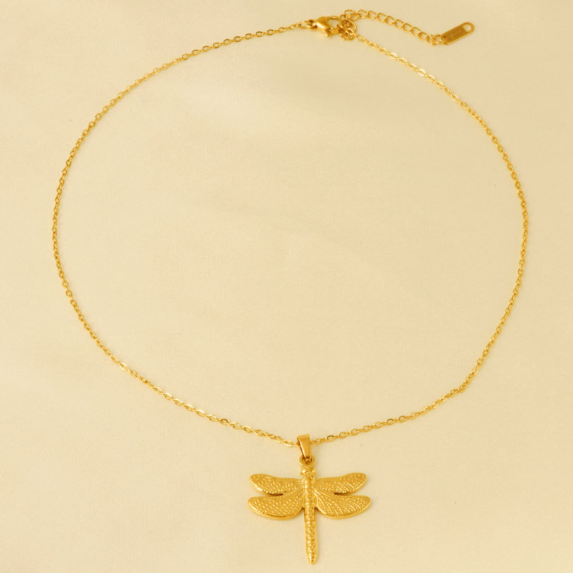 304 Stainless Steel European and American Elegant Light Luxury 18K Gold Exquisite Necklace Women's Simple Fashion Dragonfly Collarbone Chain First Jewelry