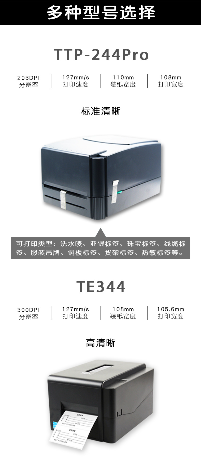 Specifications: TSC TE344 definition 300 points all kinds of HD barcode original