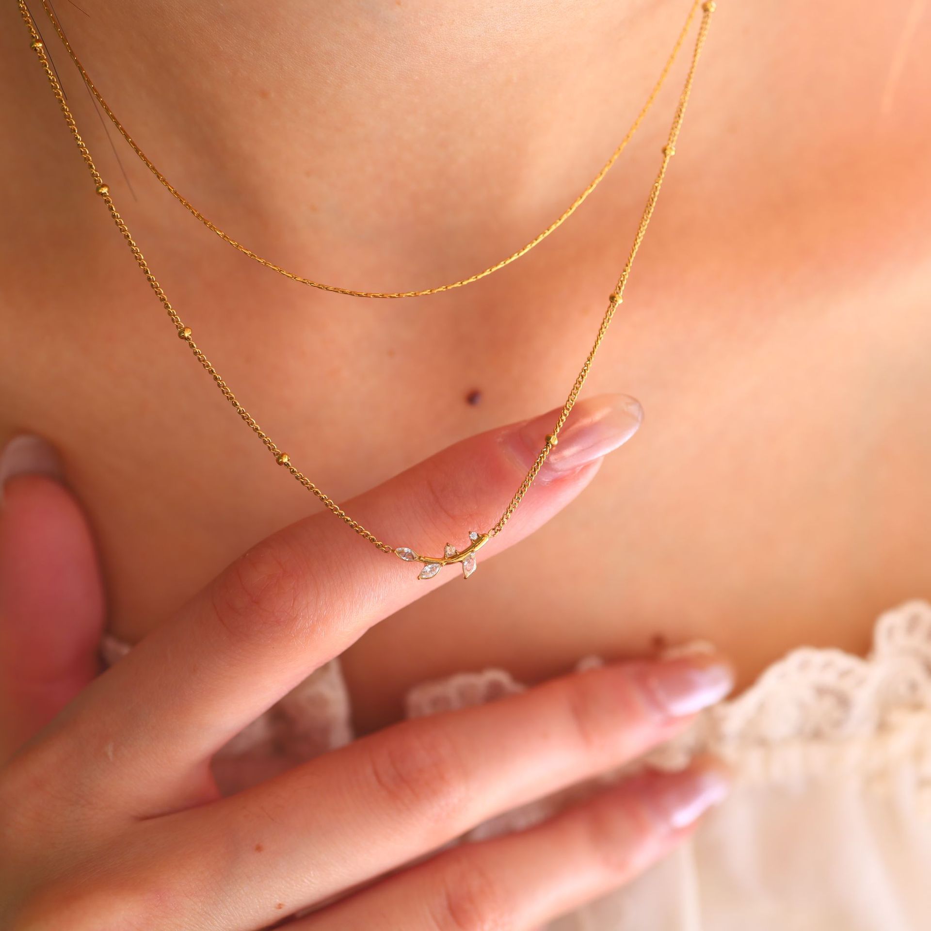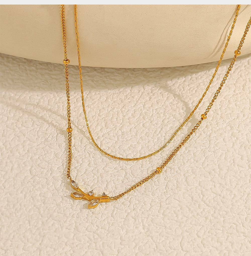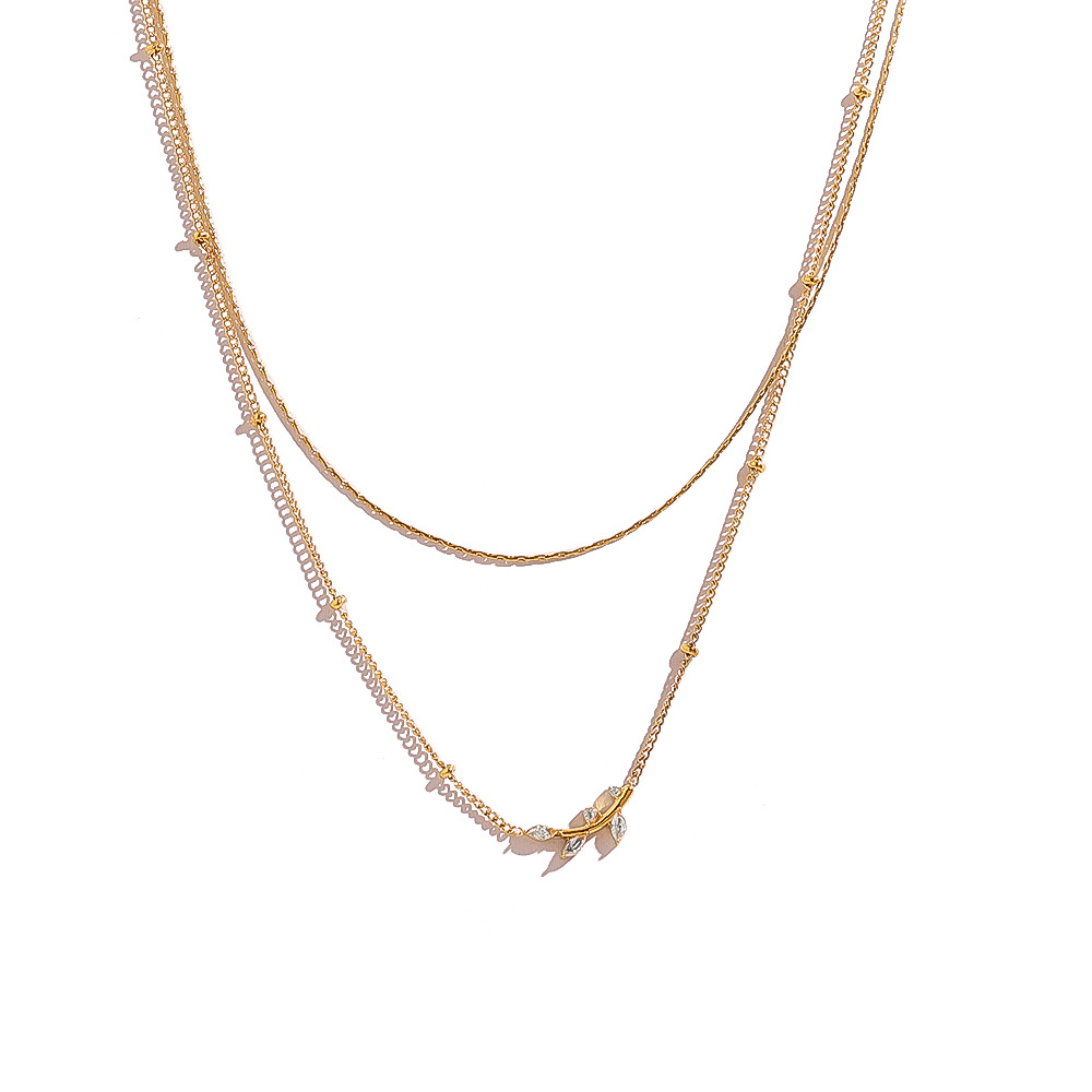 Cross-Border Design Olive Leaf Pendant Double-Layer Diamond Light Luxury Clavicle Chain Spring and Summer New European and American Style Titanium Steel Necklace for Women