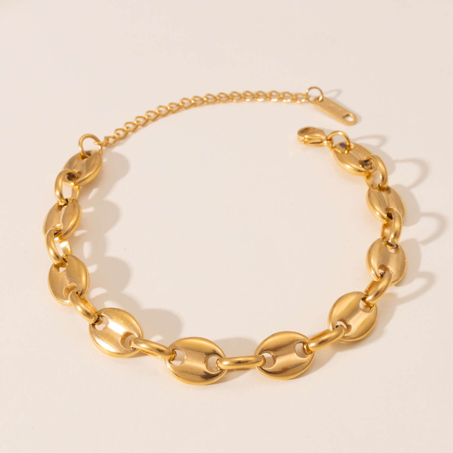 INS European and American Stainless Steel Pig Nose Buckle Gold Bean Bracelet Women's Plated 18k Gold Zircon Bracelet Light Luxury Color-Resistant Bracelet