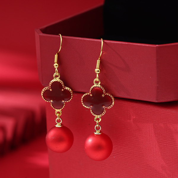 Color: Four-leaf clover burgundy red pearl