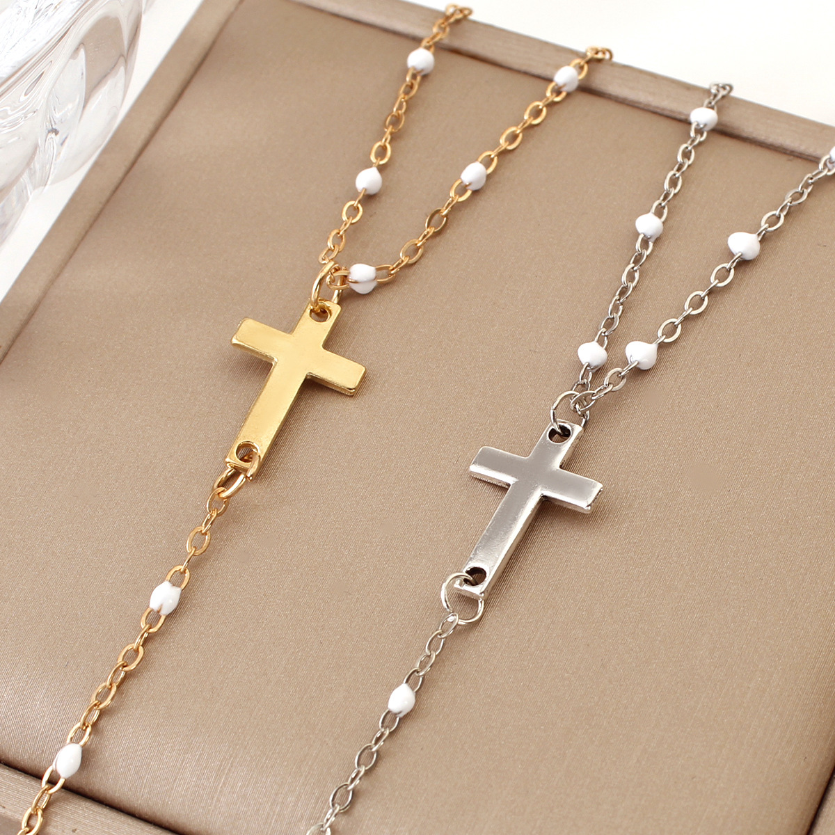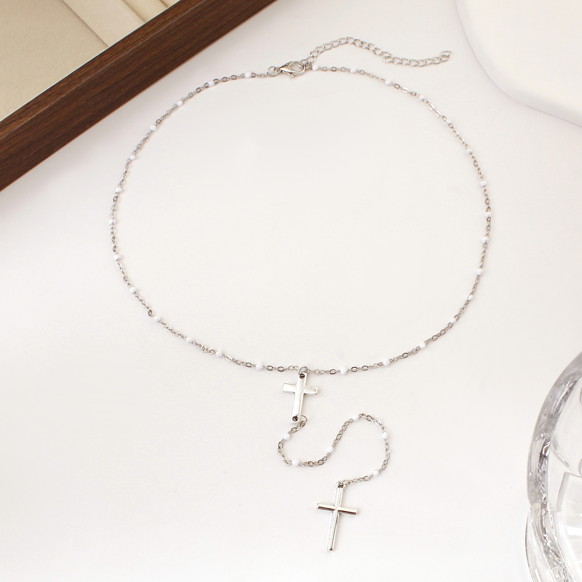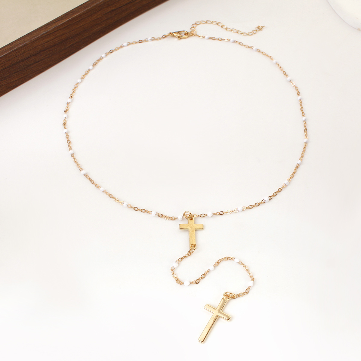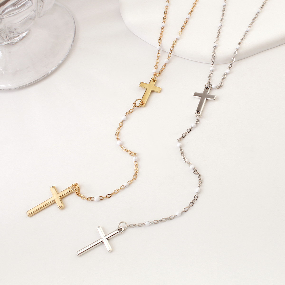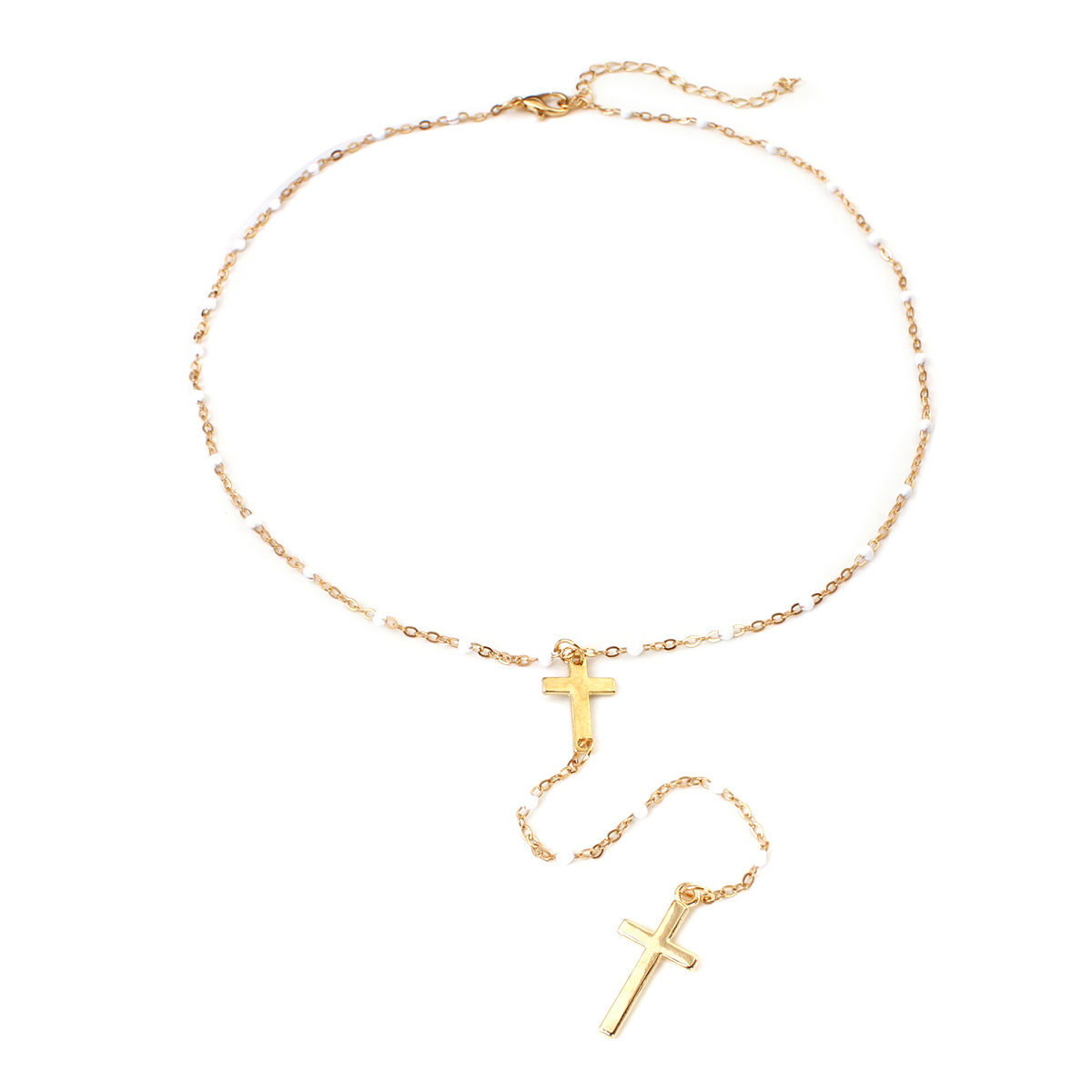 Amazon New Fashion Long Cross Tassel Women's Necklace Exquisite Y-shaped Bead Necklace Fashionable Clavicle Chain