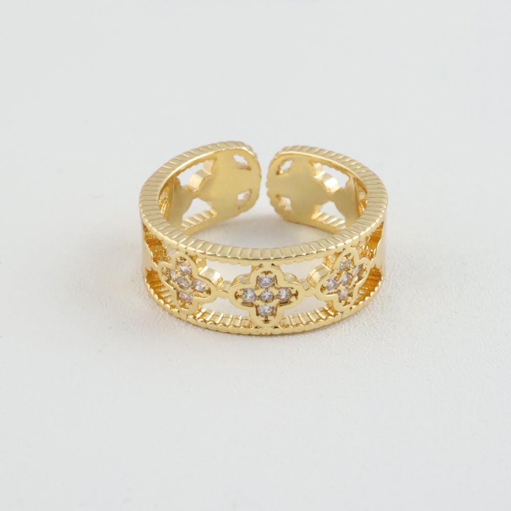 Color: J42 gold full of diamonds and thousands of flowers simple ring