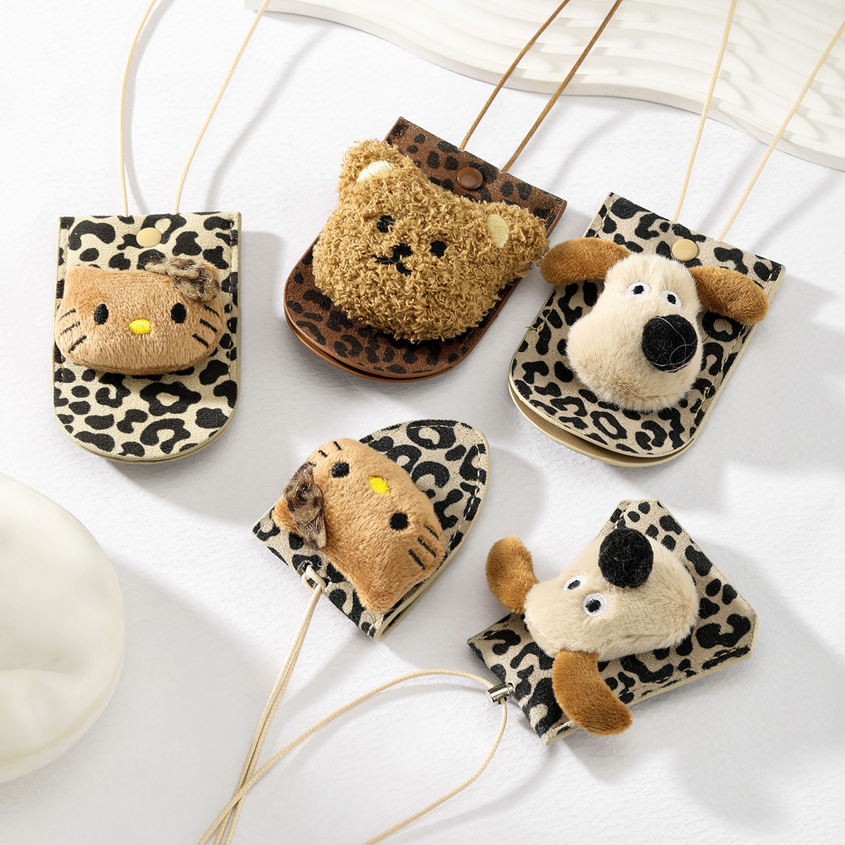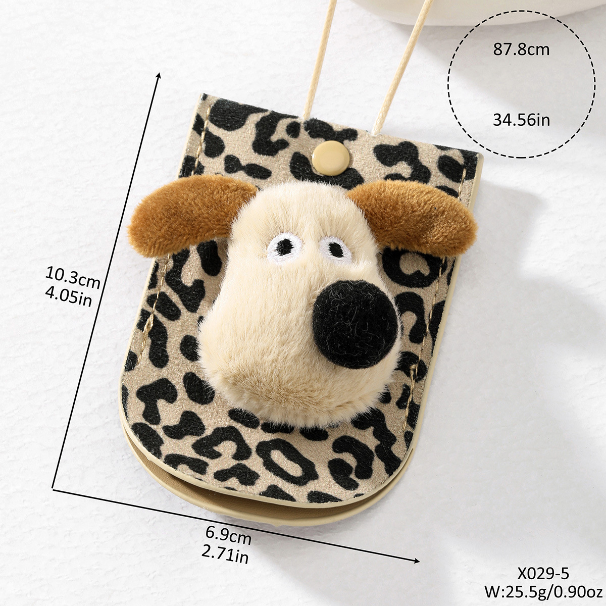 Overseas Plush Doll Leather Leopard Print Bag Decorative Chain Portable Cute Long Niche Necklace Sweater Sweater Chain