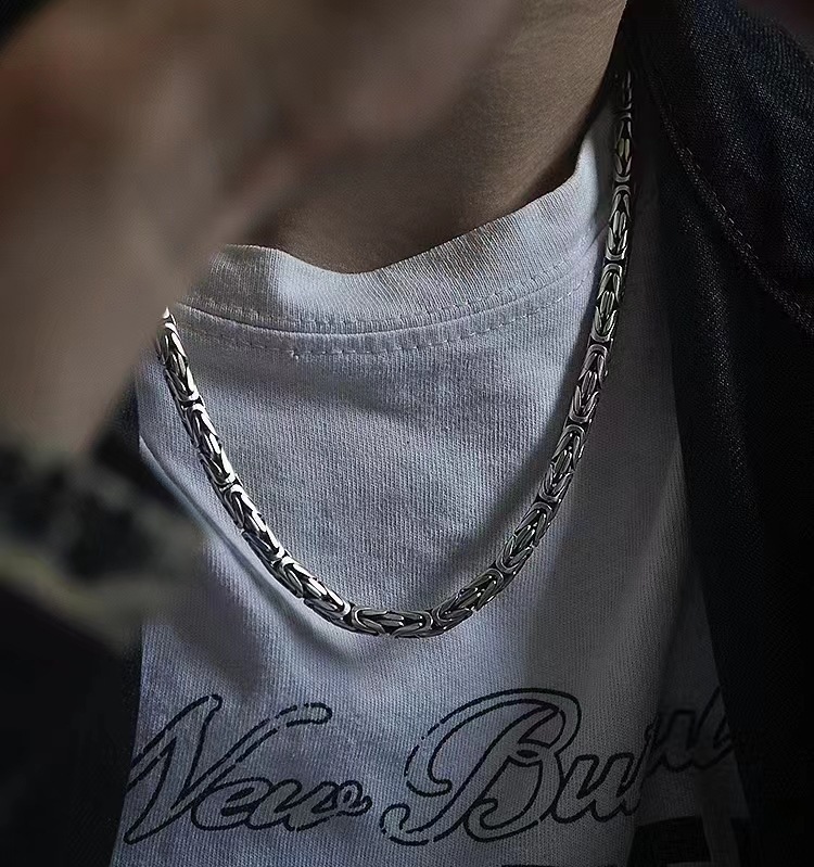 Retro Ethnic Style Peace Pattern Necklace Men's Cuban Fashion Brand Dragon Bone Chain Elegant Fashion Punk Domineering Hip Hop