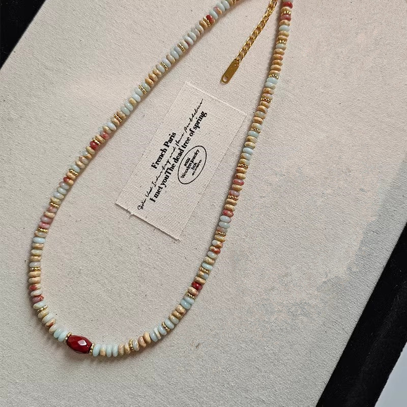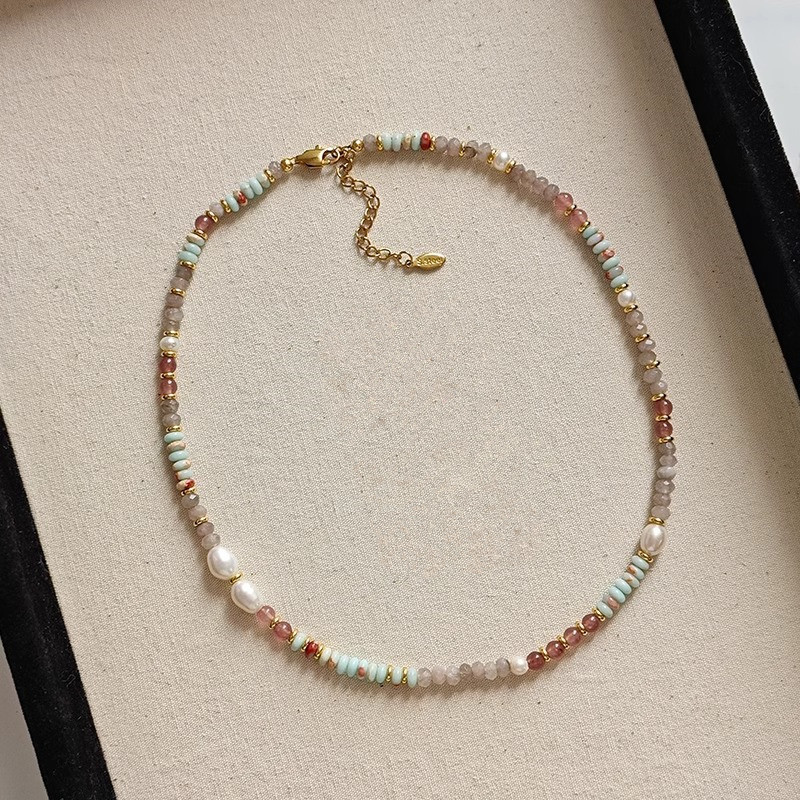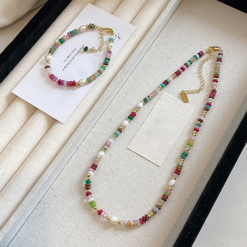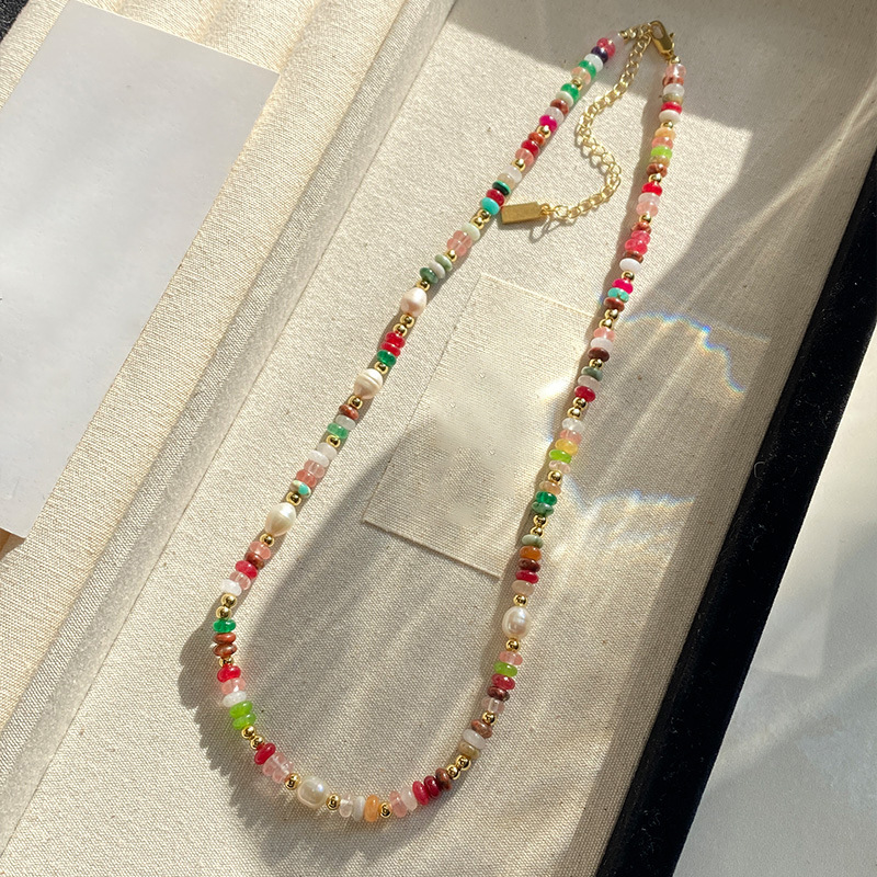 Freshwater Pearl Mixed Color Natural Stone Bracelet Summer Dopamine Necklace Temperament Cyber Celebrity Shoushan Stone Agate Clavicle Chain