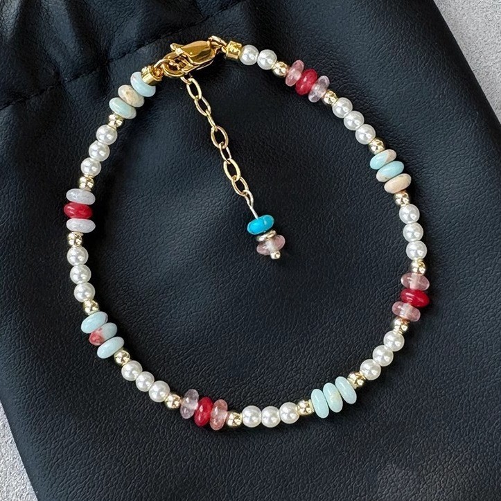 Color: Mixed Color Natural Stone Freshwater Pearl Bracelet