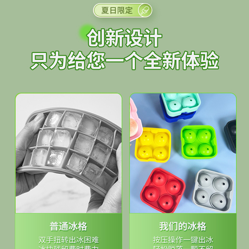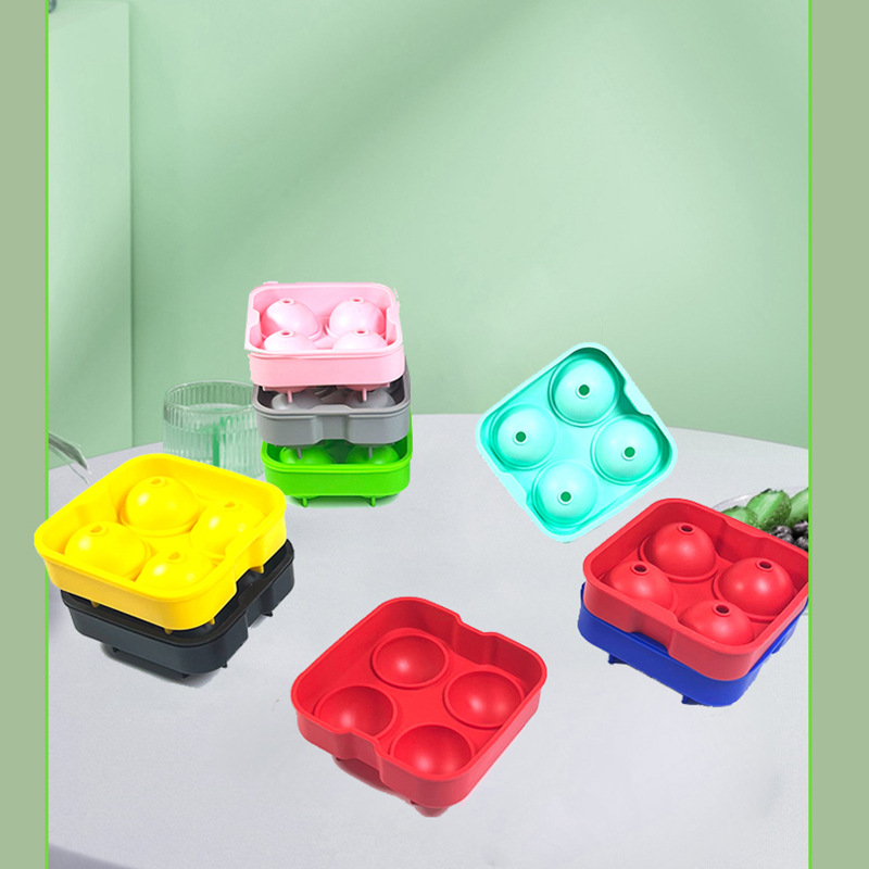 Spherical Four-Grids Silicone Ice Tray Silicone Mold Four-Hole Spherical Household Ice Tray Mold Homemade Ice Cube Ice Box