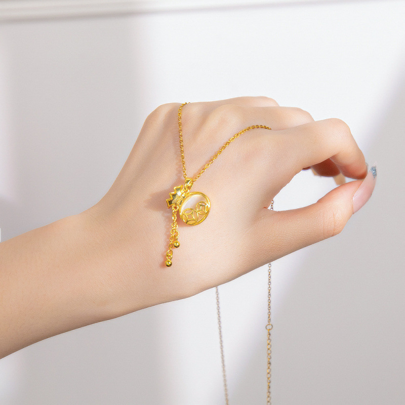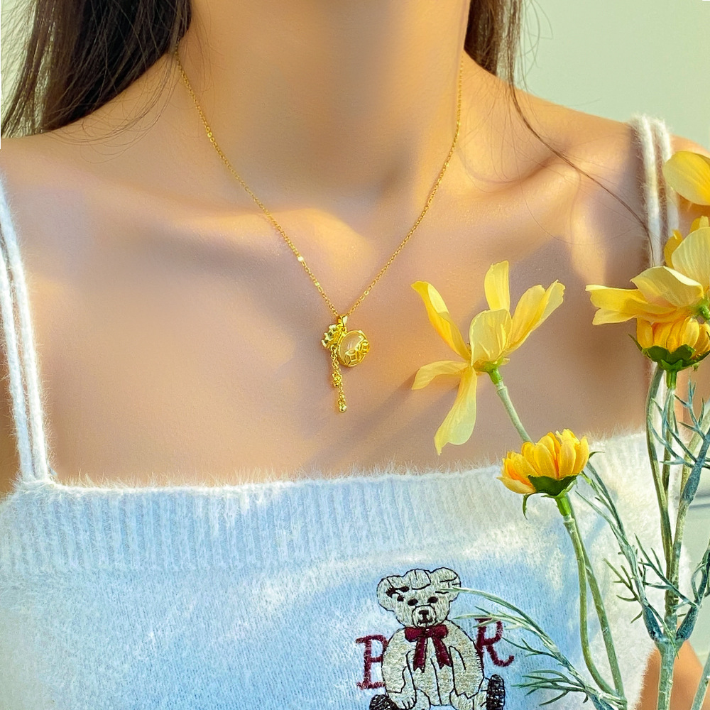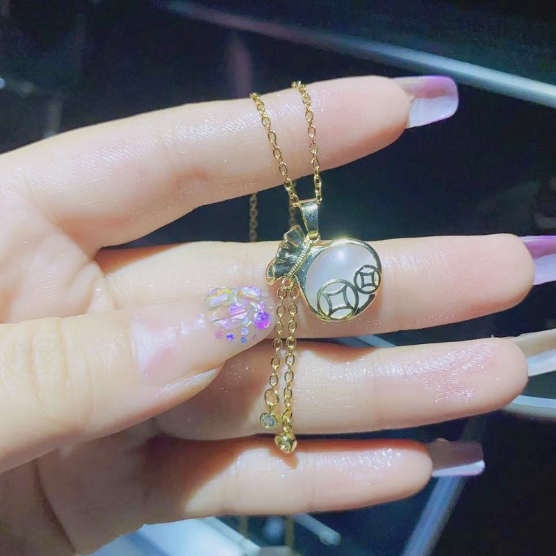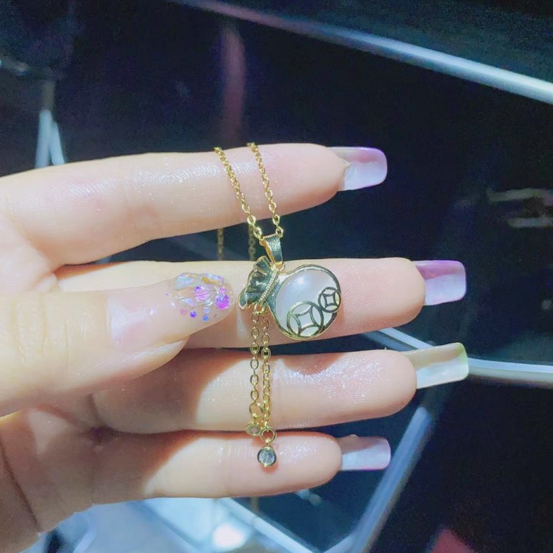 Advanced Cat's Eye Stone Tassel Money Bag Design Necklace Women's Clavicle Chain Trendy Internet Celebrity Light Luxury All-match Jewelry