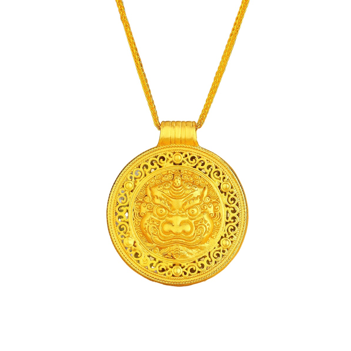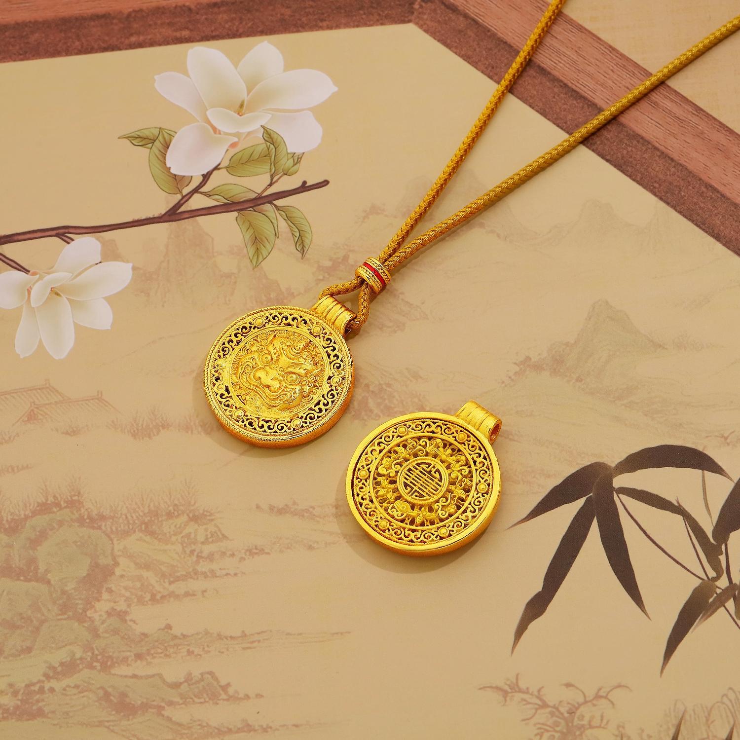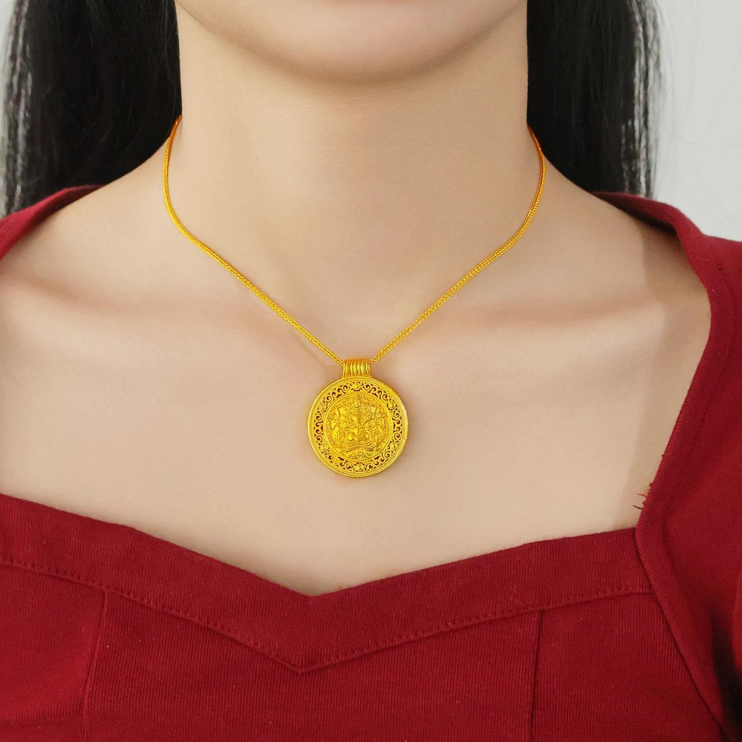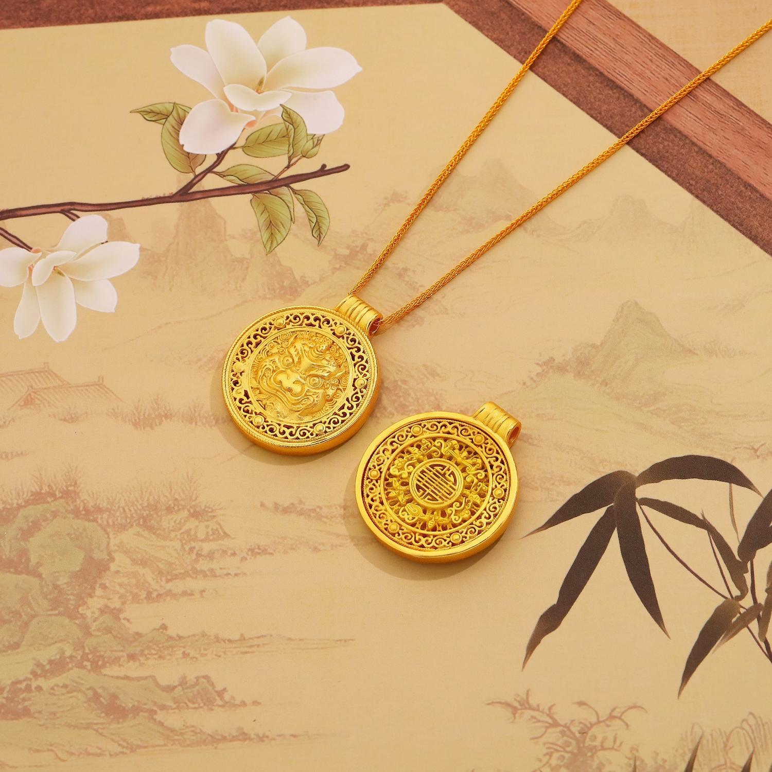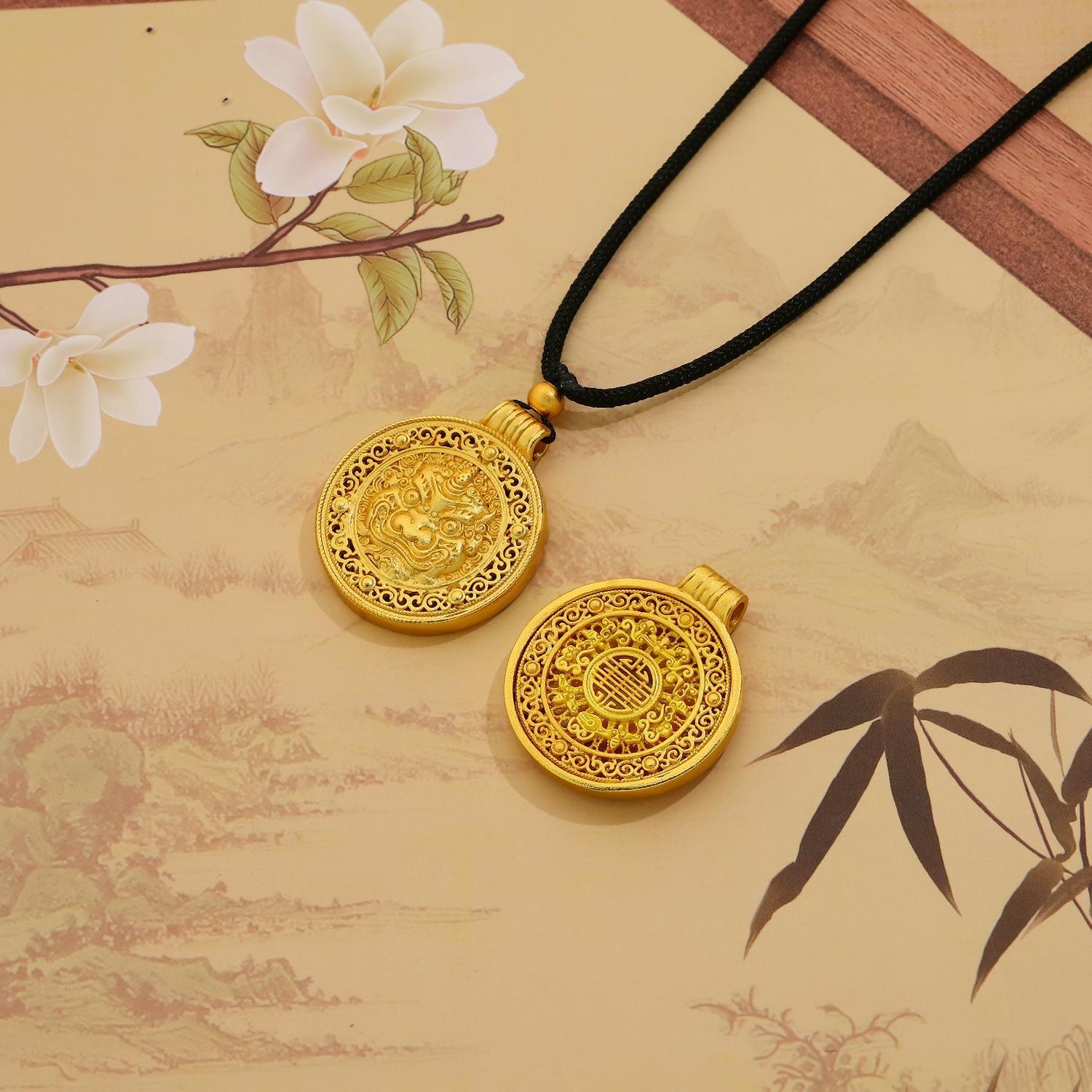Unicorn Brave Compassel Pendant Necklace Women's New Chinese-style Filament Disc Design Ancient Sands Gold Design Clavicle Chain