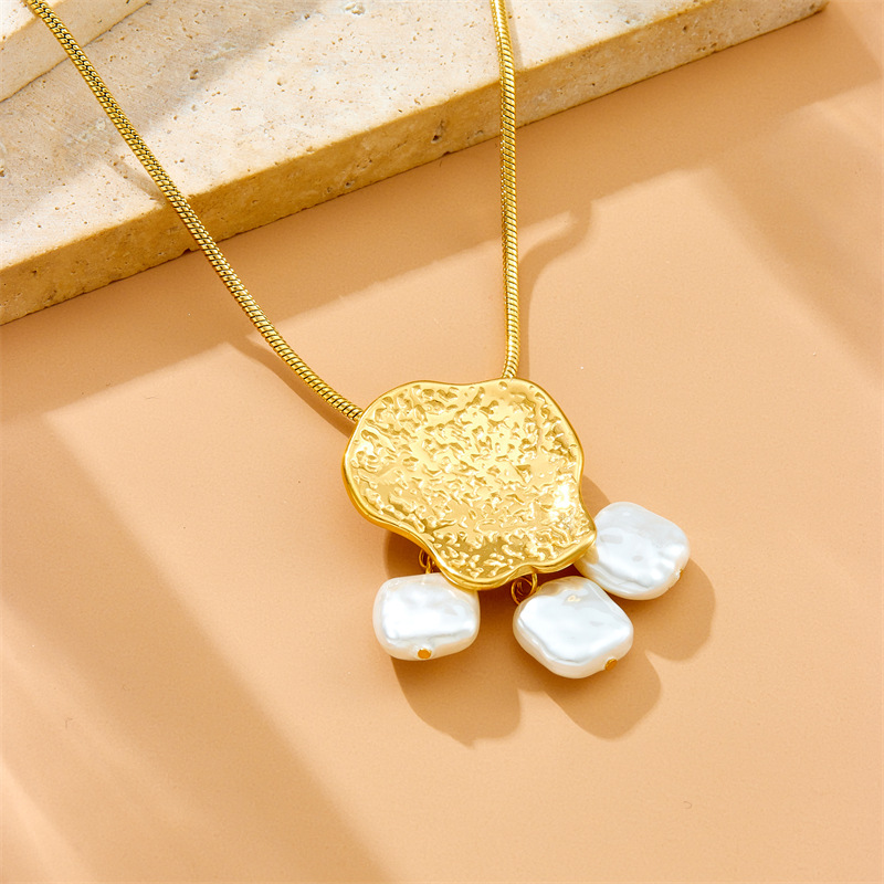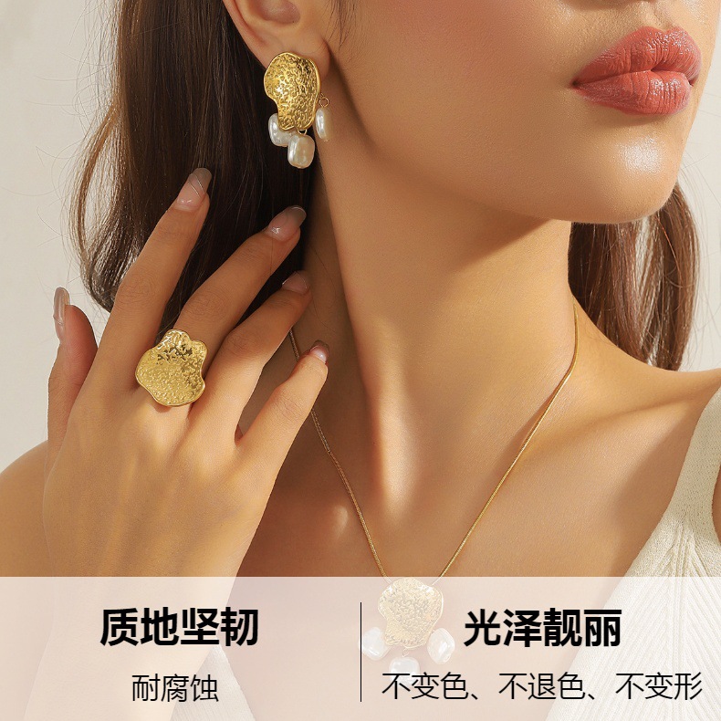 European and American Cross-border Gold-plated High-grade Jewelry suit Irregular Geometric Accessories Pearl Pendant Necklace Earrings Ring