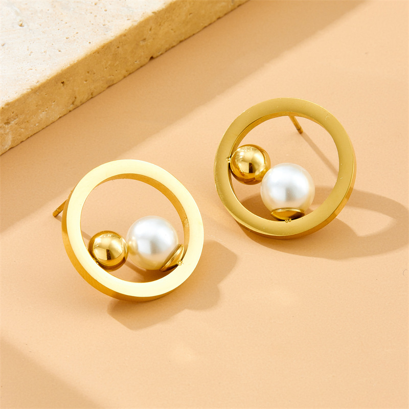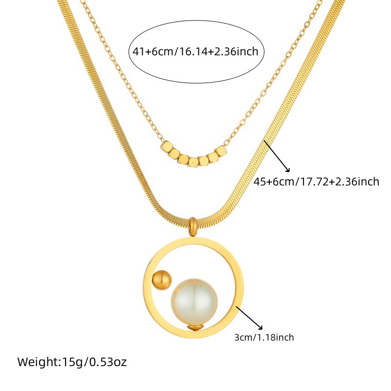 Fashion Cross-border Light Luxury Elegant Round Pearl Small Gold Bean Clavicle Chain Double Layer Overlapping Necklace Earrings Ring suit