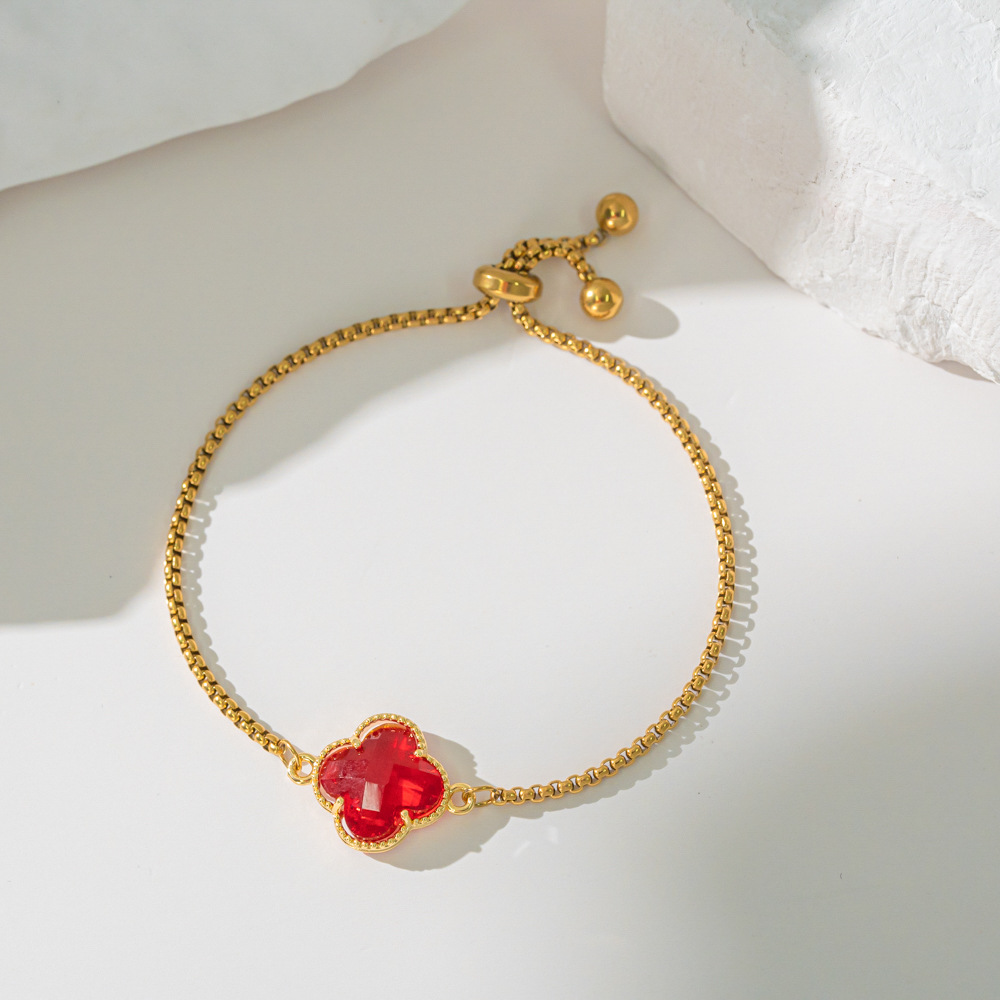 Color: 【e2220】red four-leaf clover bracelet【gold】