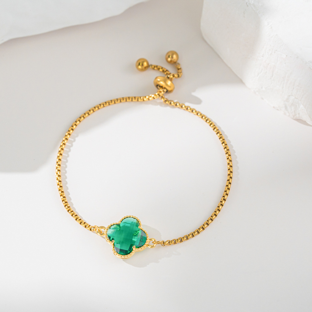 Color: 【e2221】green four-leaf clover bracelet【gold】