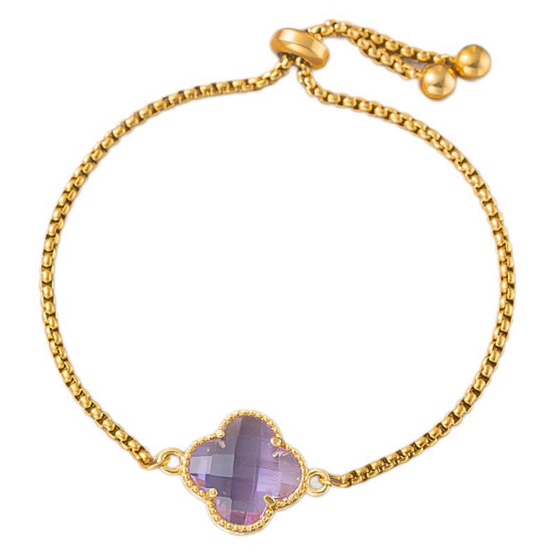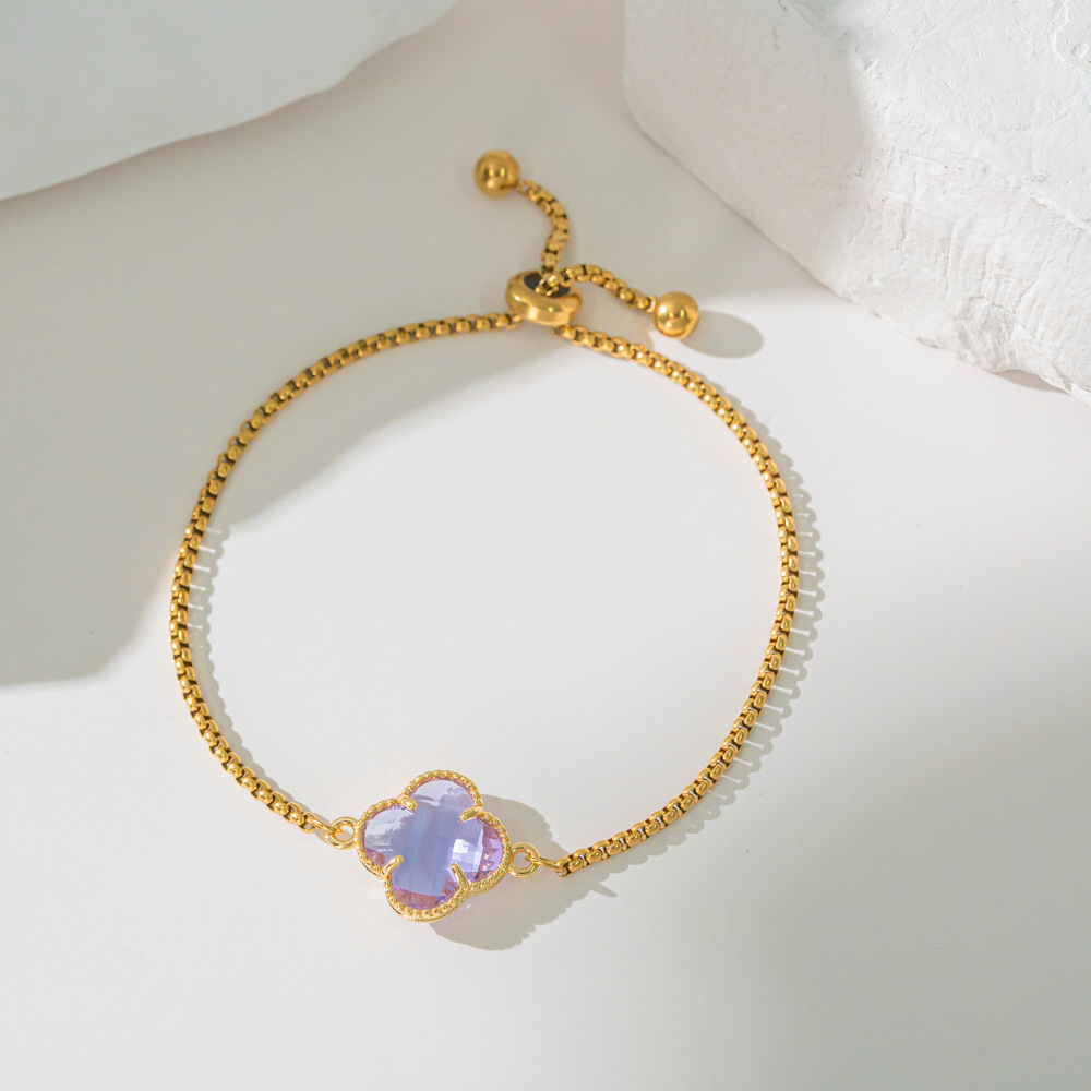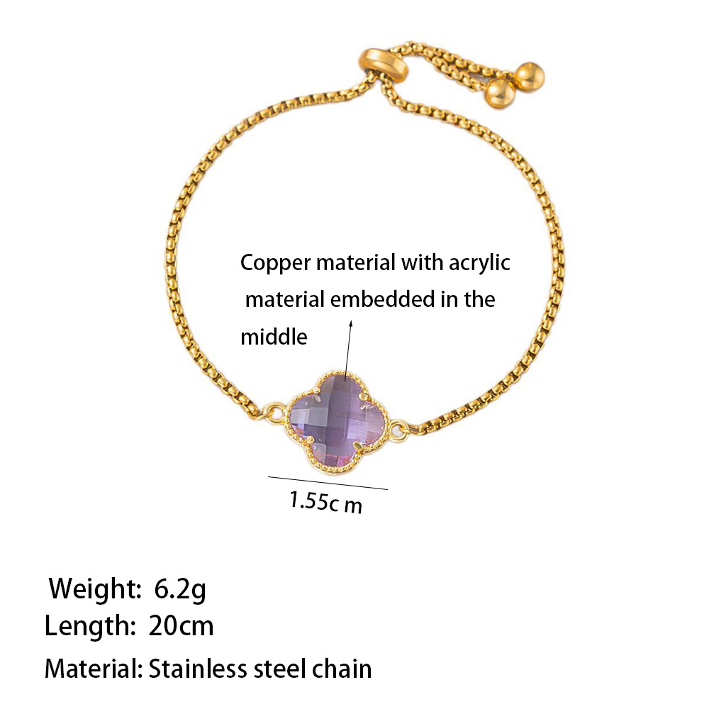 Color: 【e2223】purple four-leaf clover bracelet【gold】