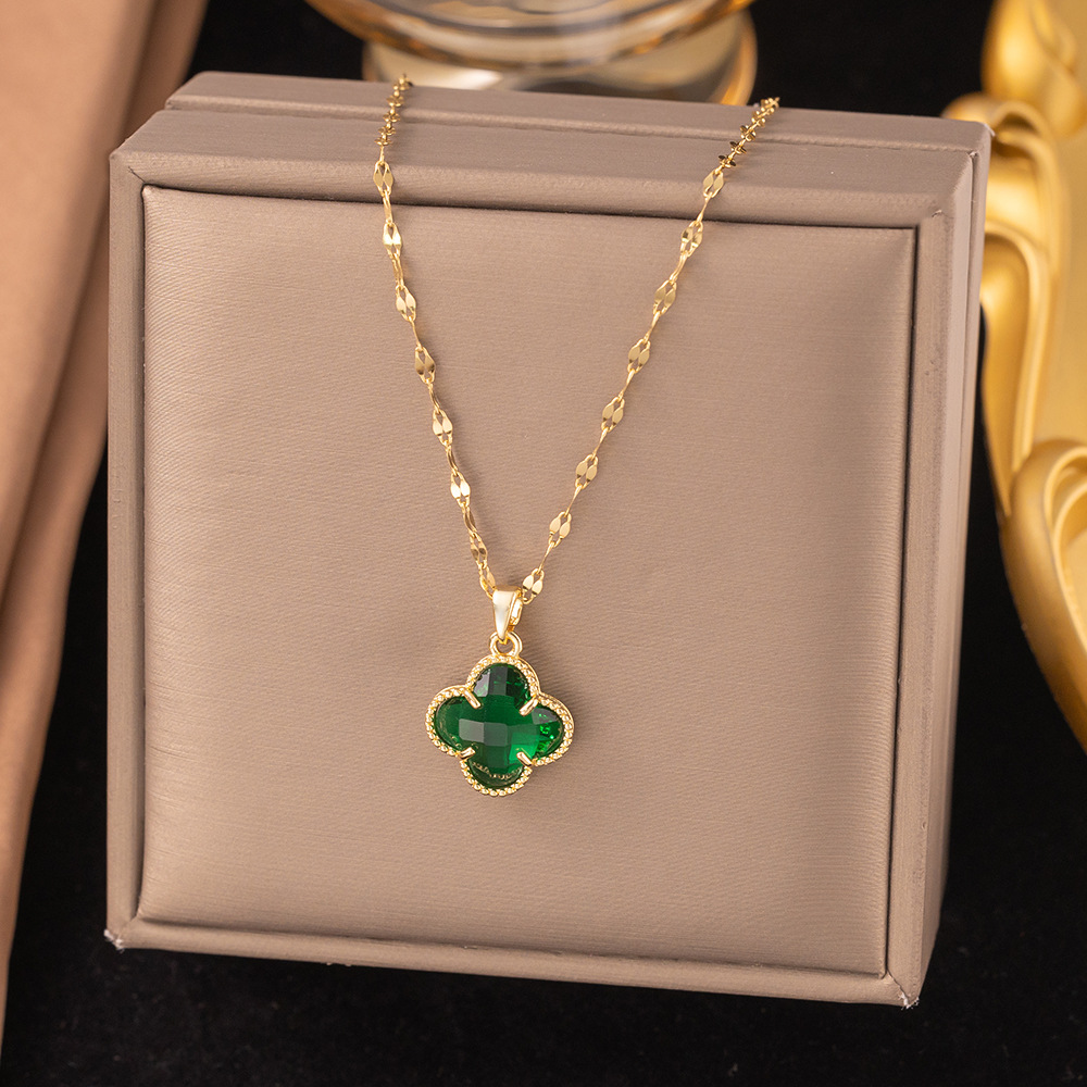 Color: 【8078】white diamond four-leaf clover necklace【gold】