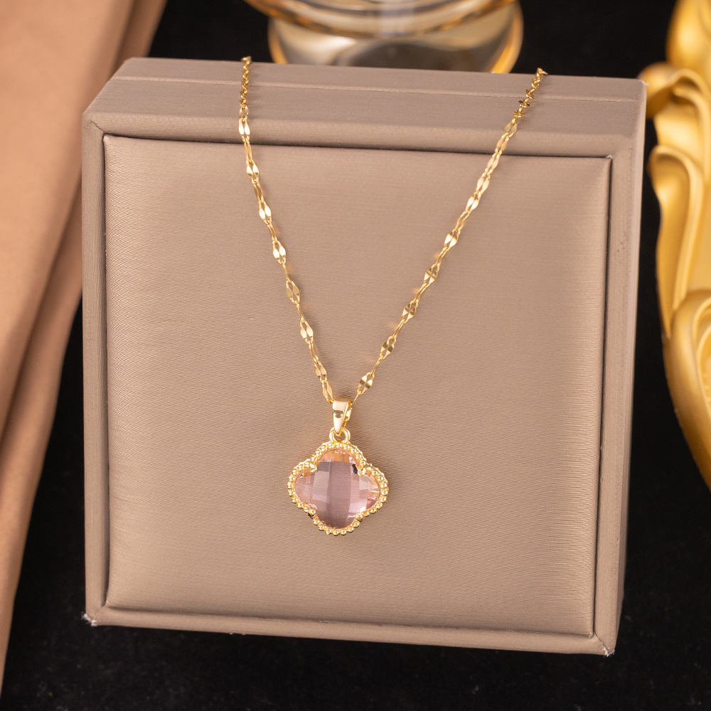 Color: 【8048】pink four-leaf clover necklace【gold】
