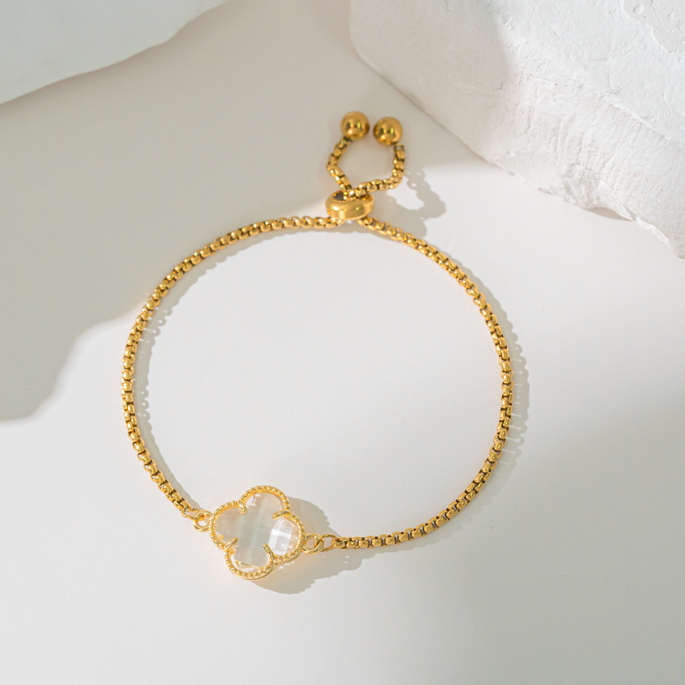 Color: 【e2226】white four-leaf clover bracelet【gold】