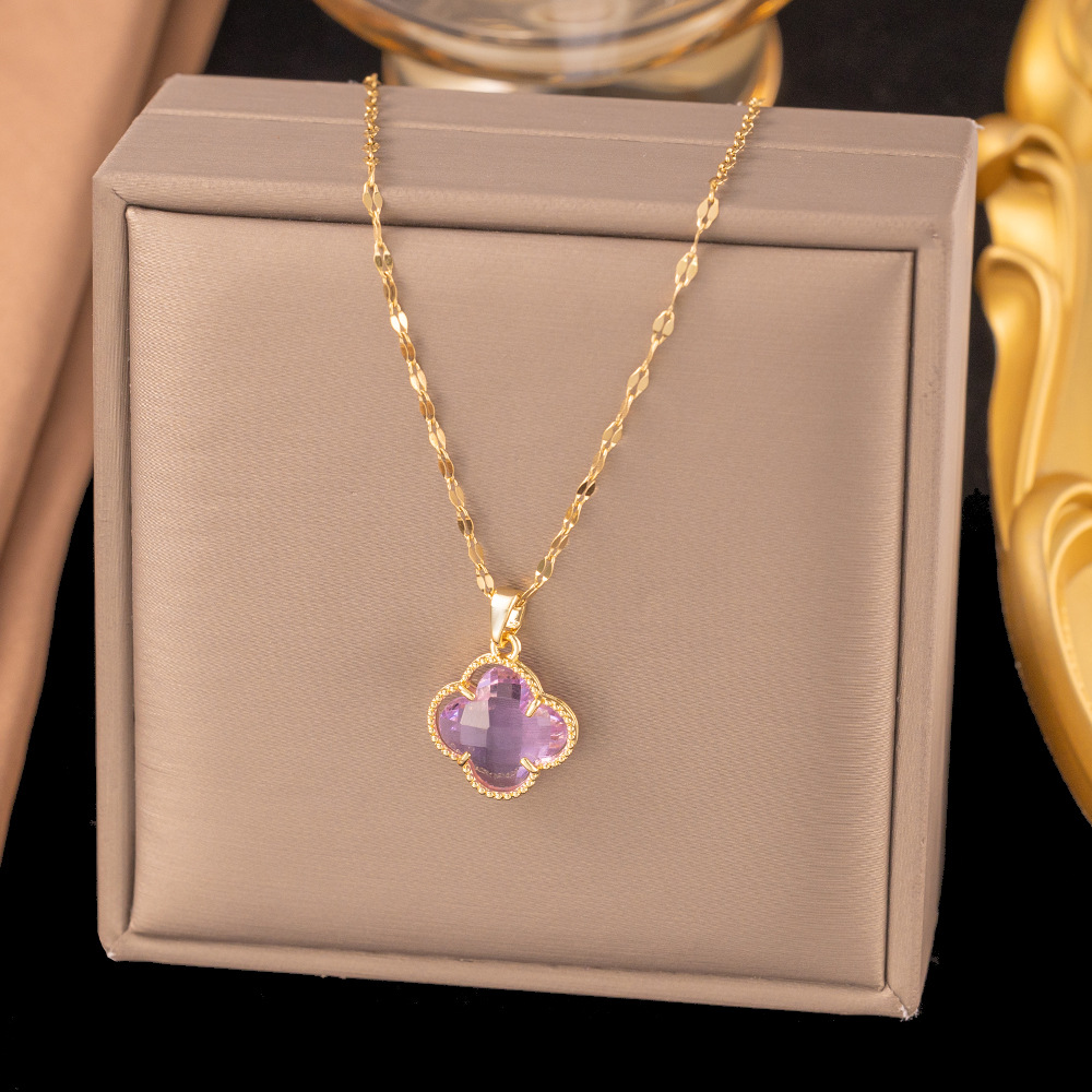 Color: 【8049】purple four-leaf clover necklace【gold】