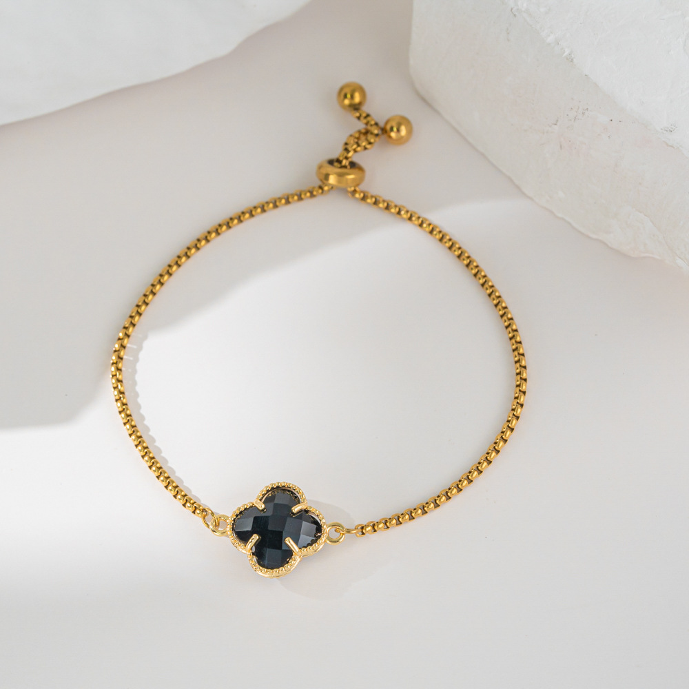 Color: 【e2225】black four-leaf clover bracelet【gold】