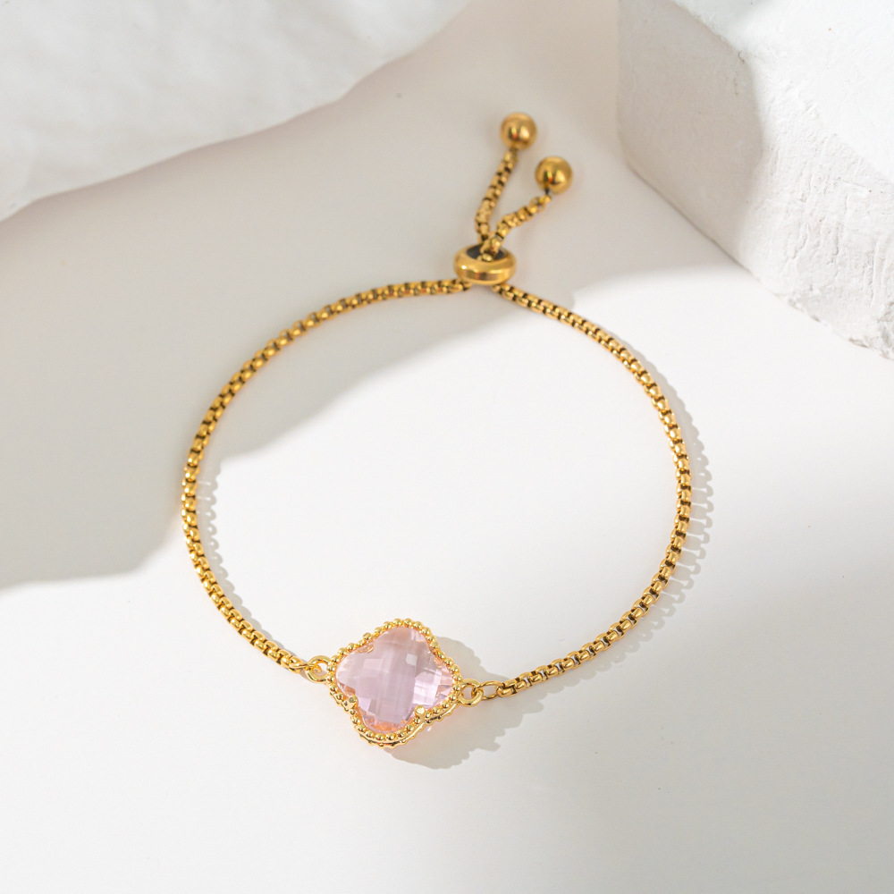 Color: 【e2222】pink four-leaf clover bracelet【gold】