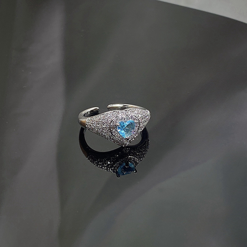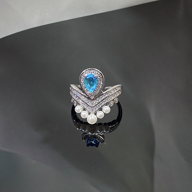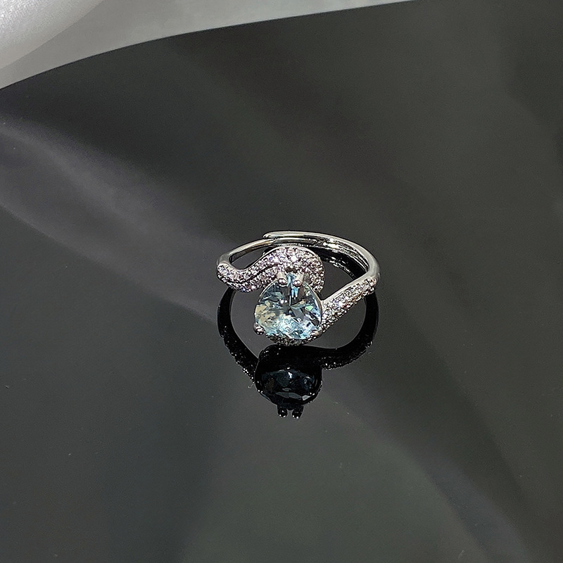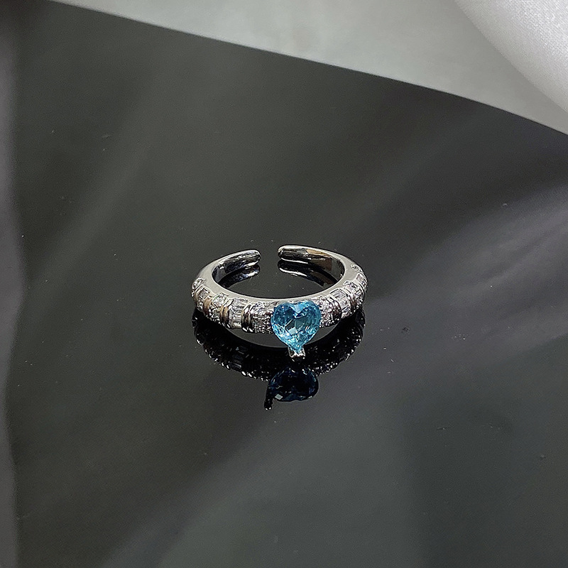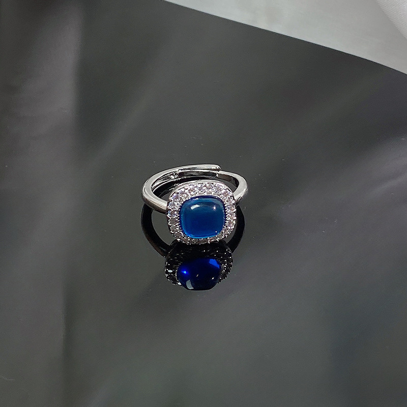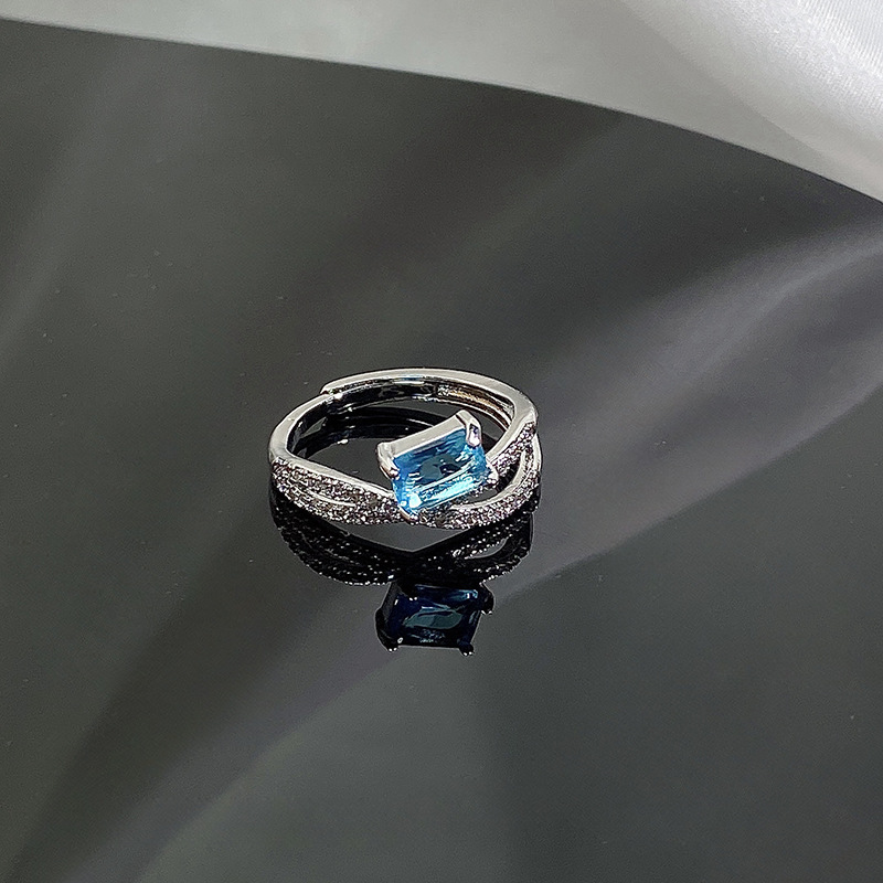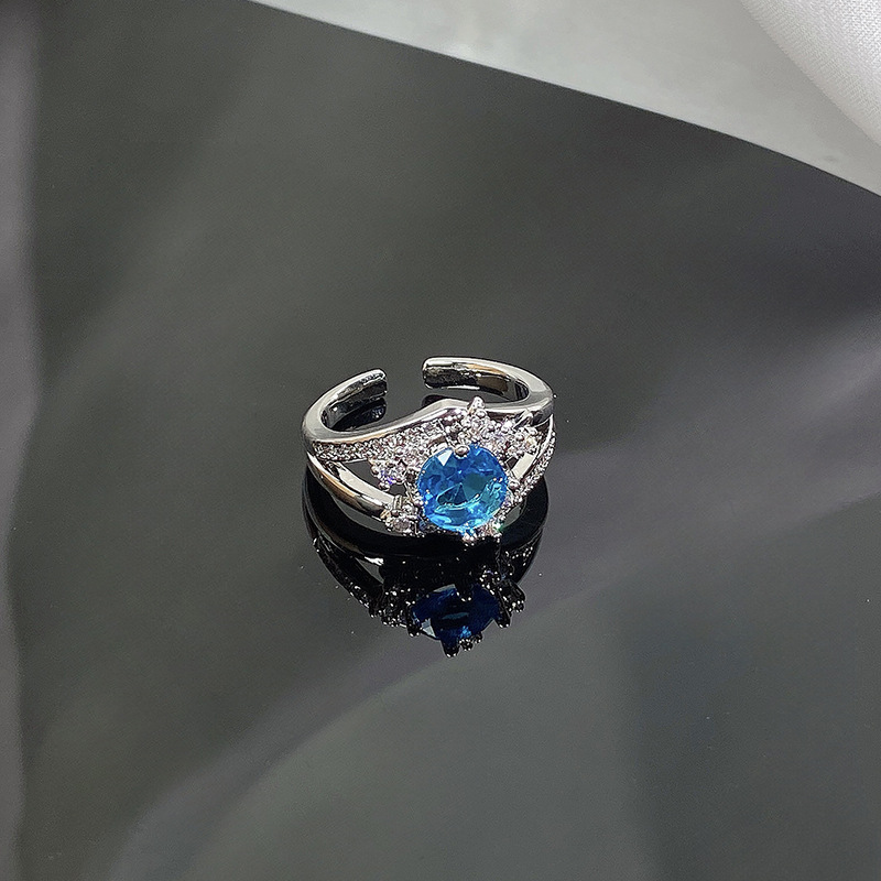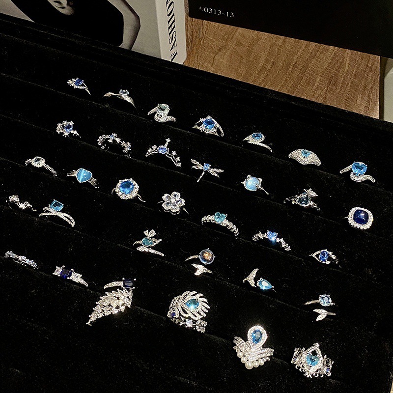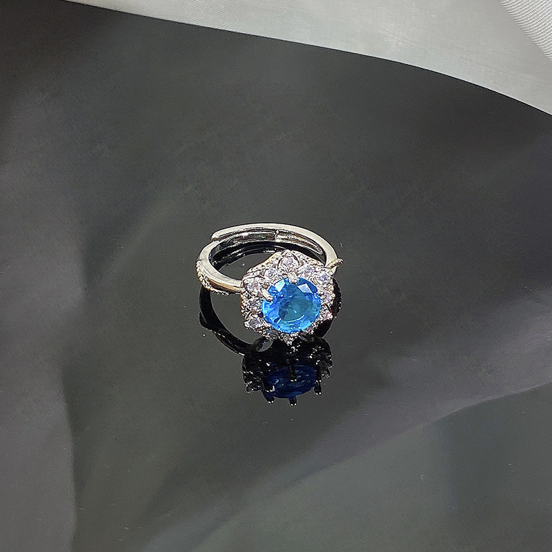 「Paraiba」Lake Blue Series Ring Feminine High-Quality Zircon Micro-Inlaid Retro Light Luxury Ring Trend